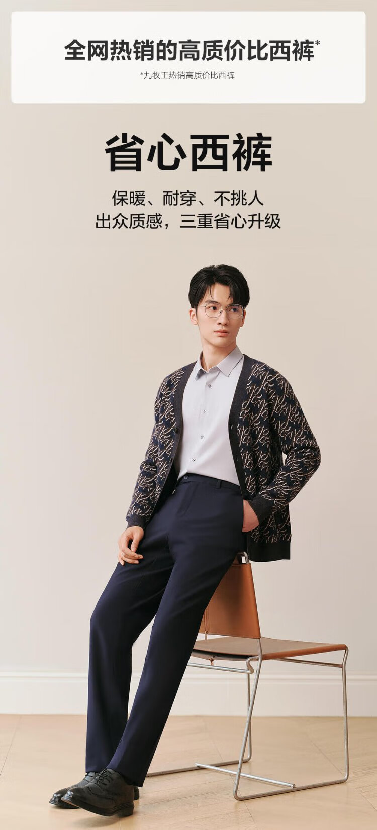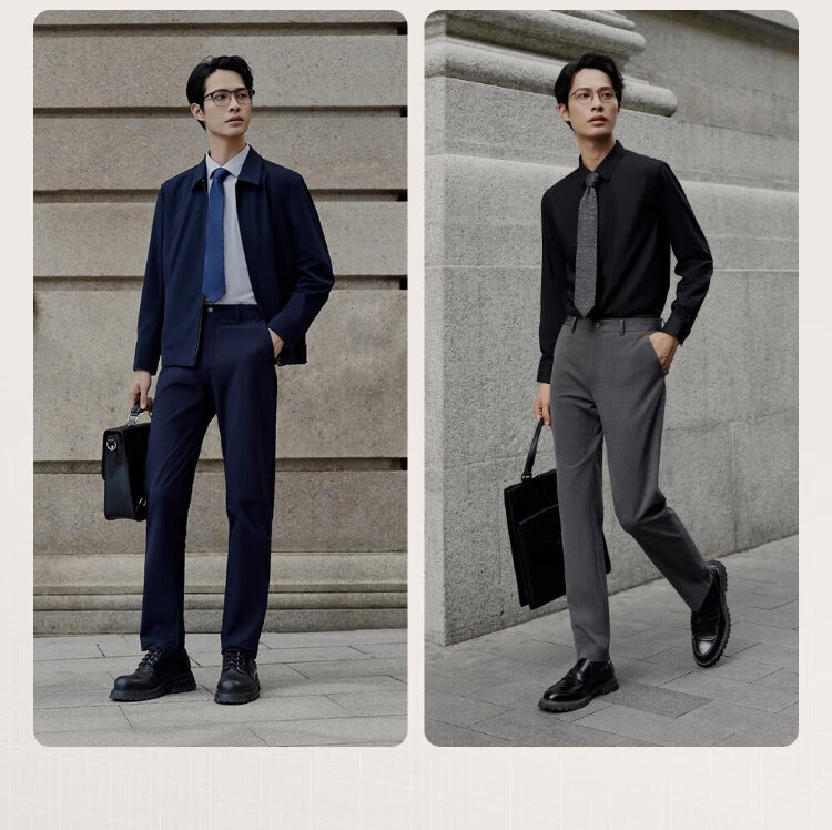 Jiumuwang men's trousers, men's worry-free trousers to keep out the cold, plus velvet version, easy-care straight-leg suit trousers for men in autumn and winter