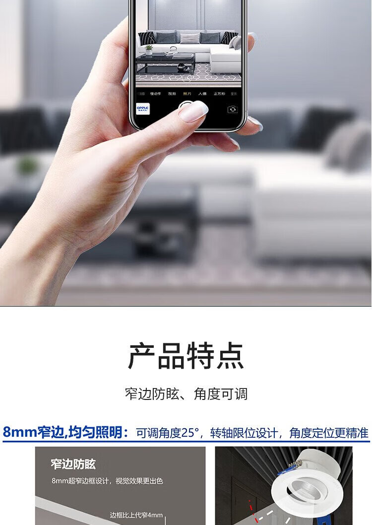 OPPLE LED downlight embedded anti-glare aisle wall washing hill no video flashlight ceiling light downlight 6W-warm white light opening 65-80