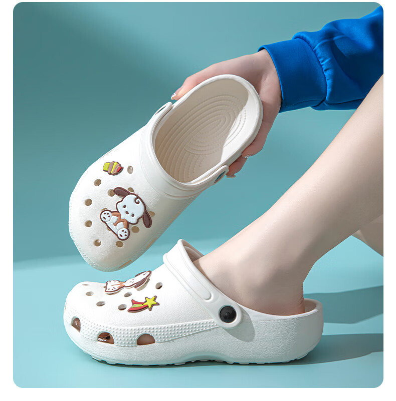 She enjoys Crocs Women's Beach Shoes Sandals and Slippers for Outerwear TE552 White Khaki-Upgraded Version 38/39