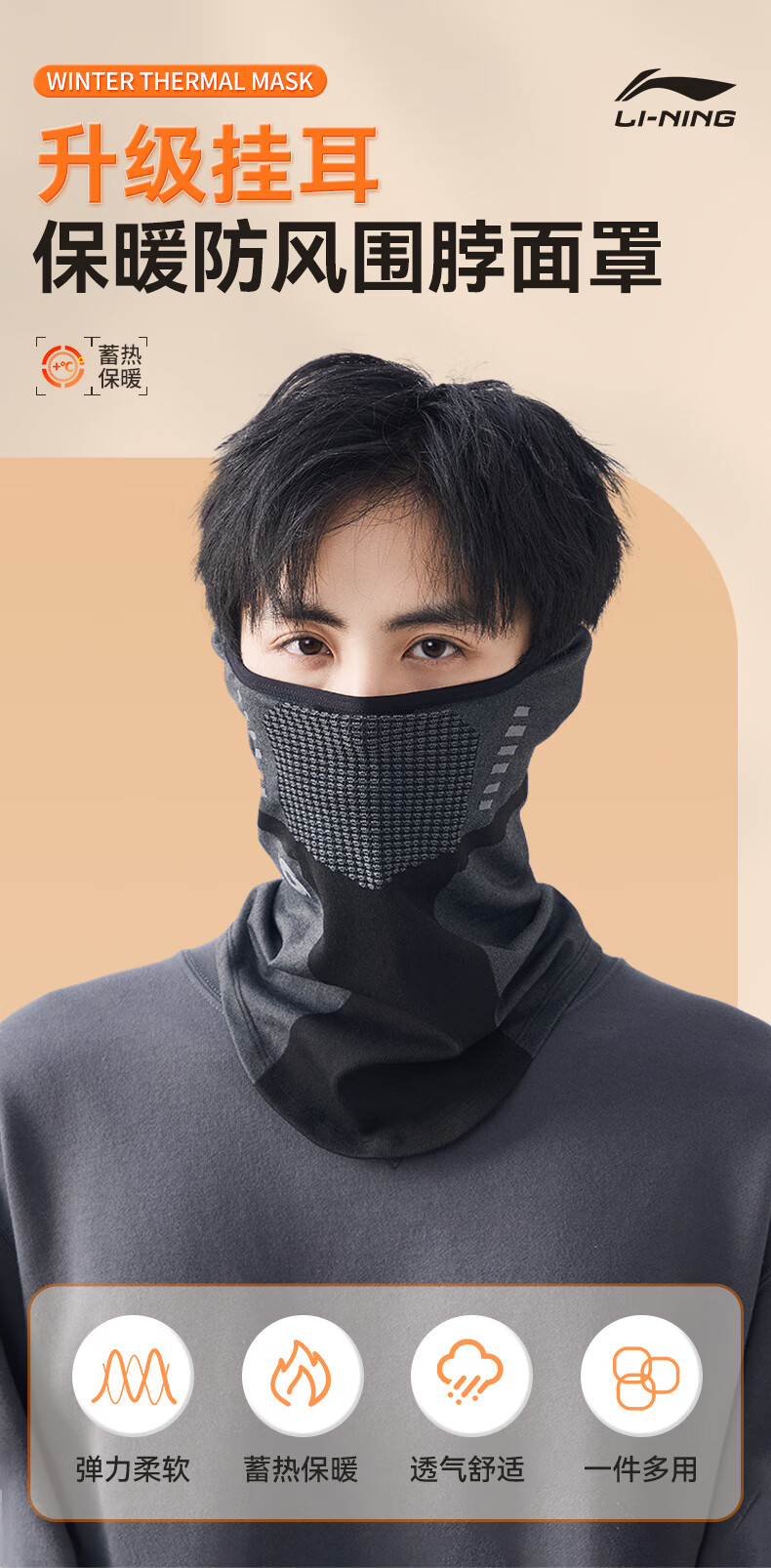 Li Ning (LI-NING) cycling mask warm neck scarf for men and women winter cold mask earmuffs outdoor ski mask windproof ear hanging neck cover