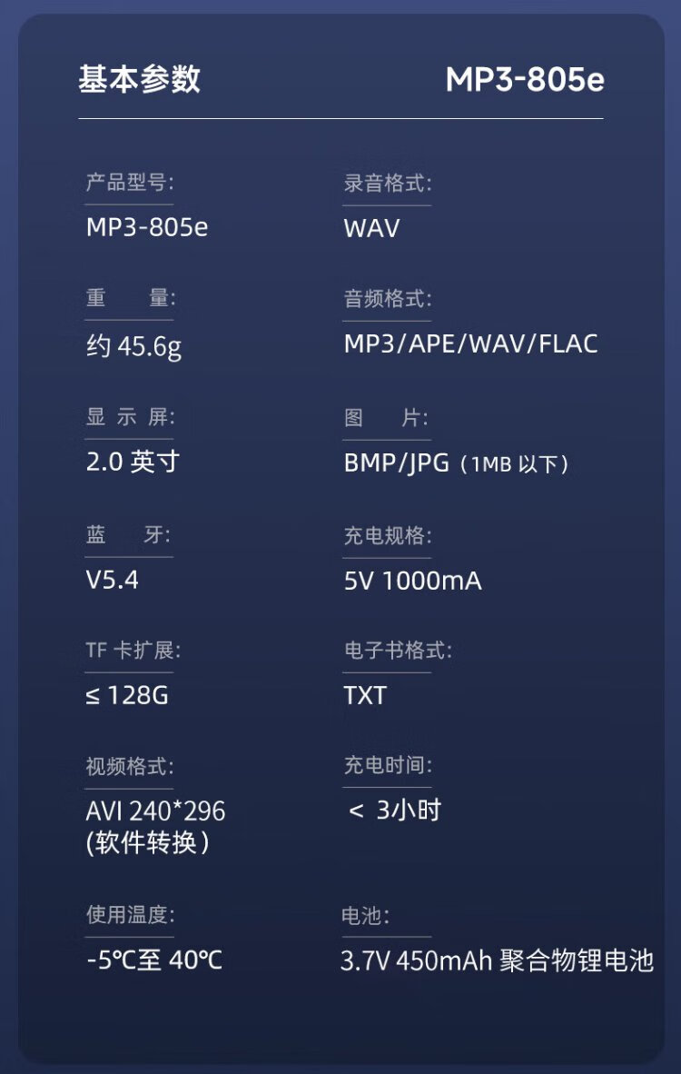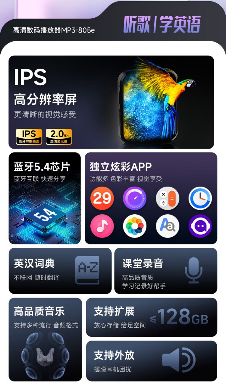Aigo 805e mp3/mp4 video player 2-inch touch screen Bluetooth 5.4 external lossless HIFI student English walkman e-book white 8G