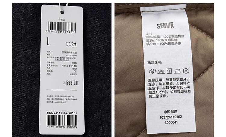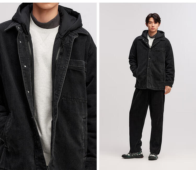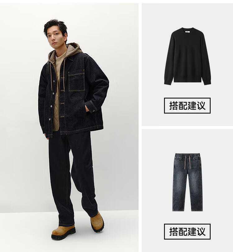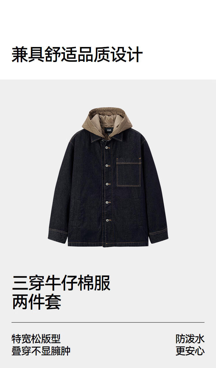 Semir cotton coat men's winter waterproof thin one-piece three-wear two-piece oversize denim jacket 103724112102