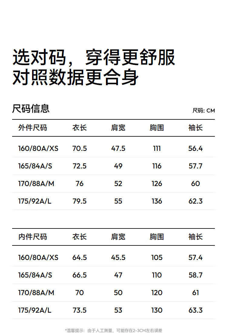 China (cm) 160-165/84-86 165-170 / 88-90 167-172 / 92-96 168-173 / 98-102 170-176 / 106-110