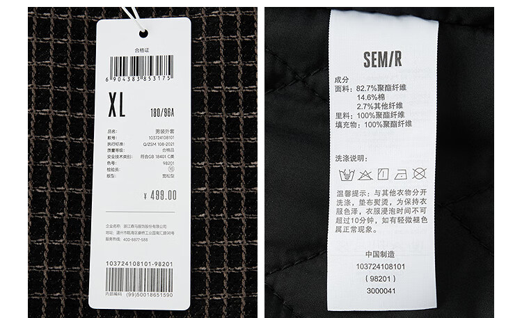 Semir Jacket Men's Plaid Velvet Chenille Denim Jacket Winter Cotton Clothes Loose Coach Clothes 103724108101
