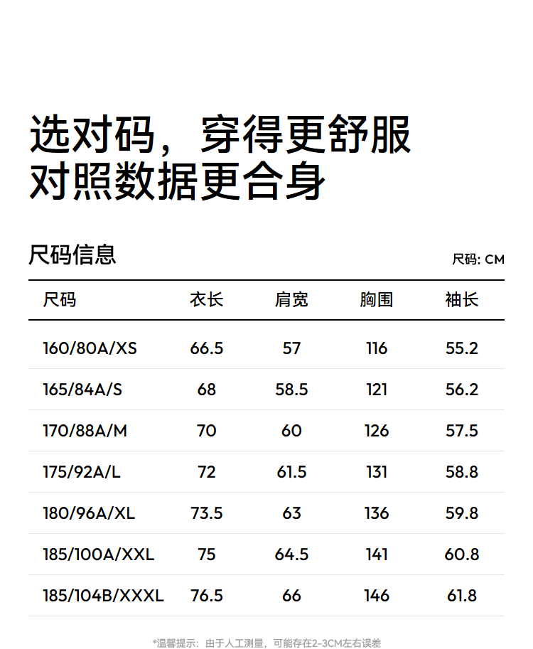 China (cm) 160-165/84-86 165-170 / 88-90 167-172 / 92-96 168-173 / 98-102 170-176 / 106-110