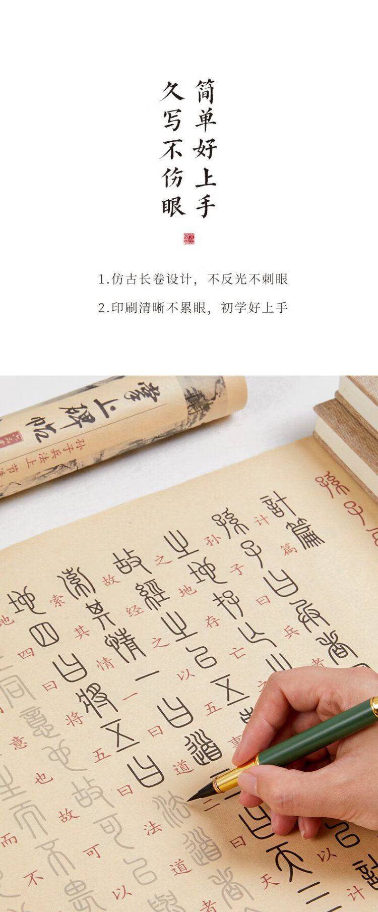 Low price on the whole network, really cheap live broadcast room Liupintang seal calligraphy brush copybook Sun Tzu Art of War small seal practice brush calligraphy introductory practice paper special red tracing calligraphy beginner calligraphy brush adult soft pen tracing red long scroll