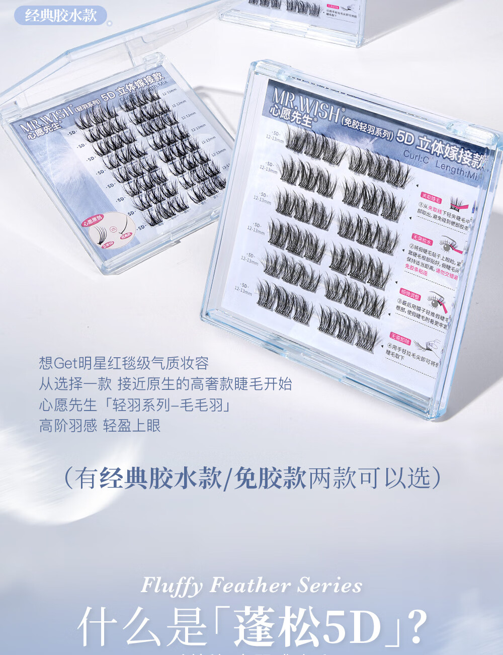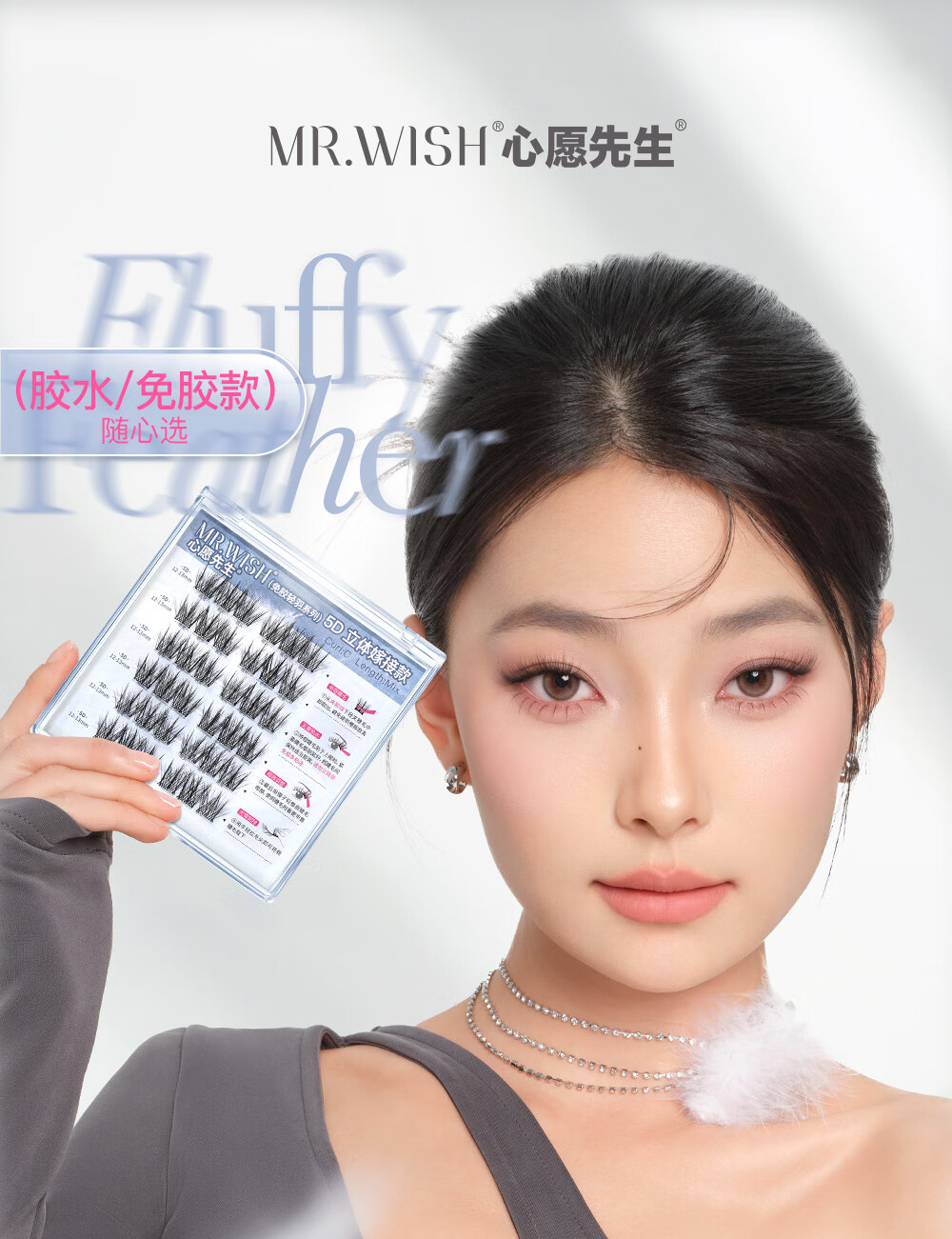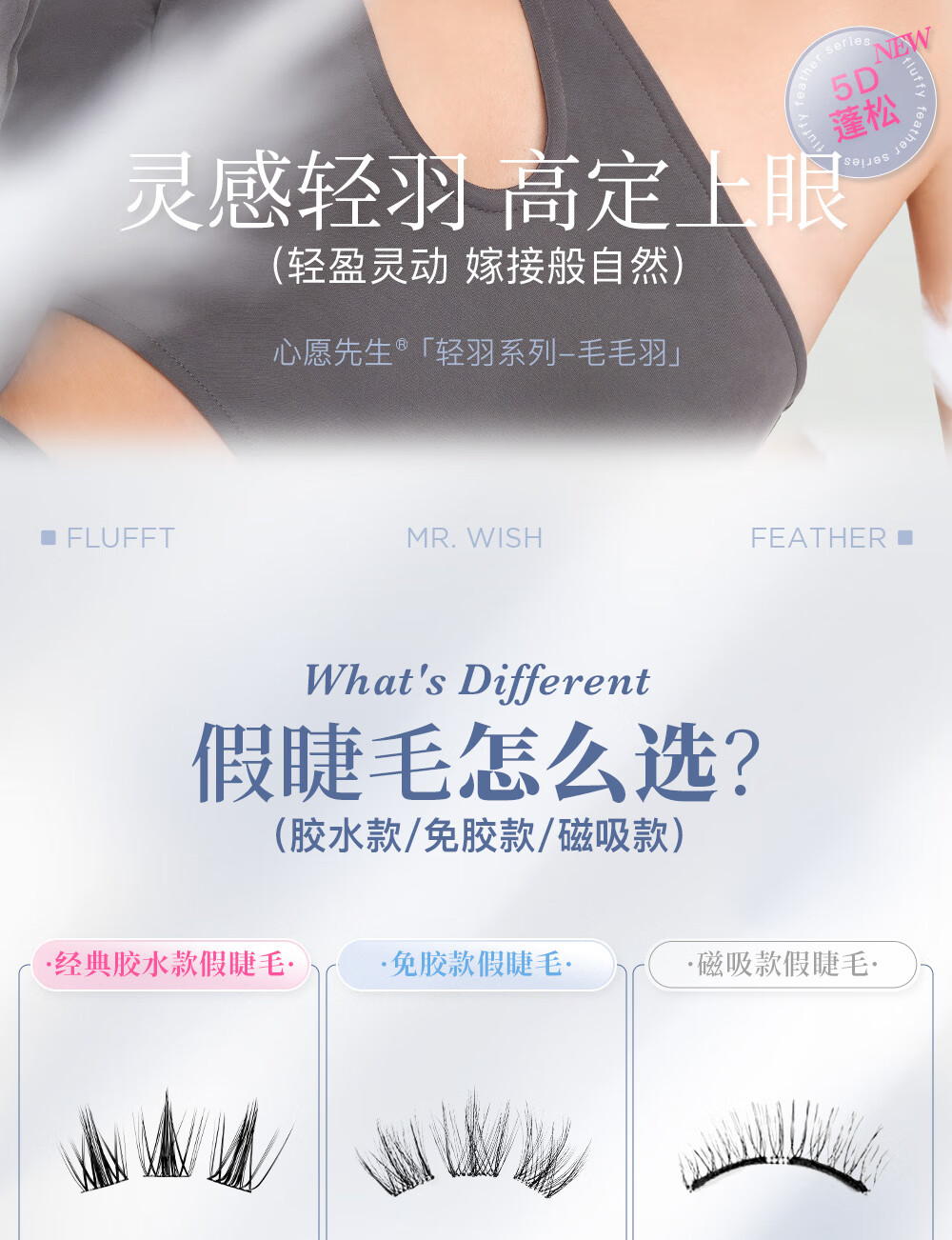 Mr. Wish's glue-free light feather series 5D three-dimensional grafting self-adhesive false eyelashes glue-free light feather 1 box