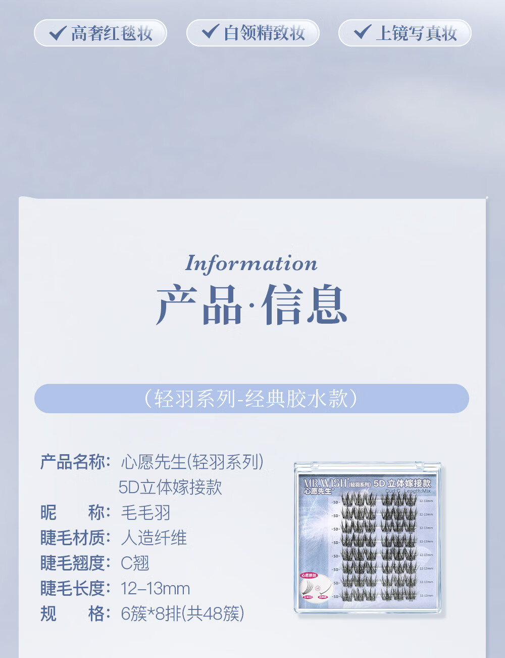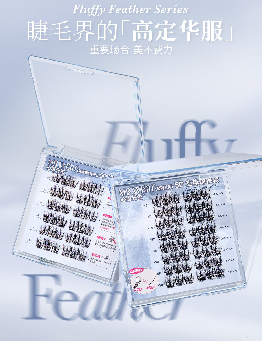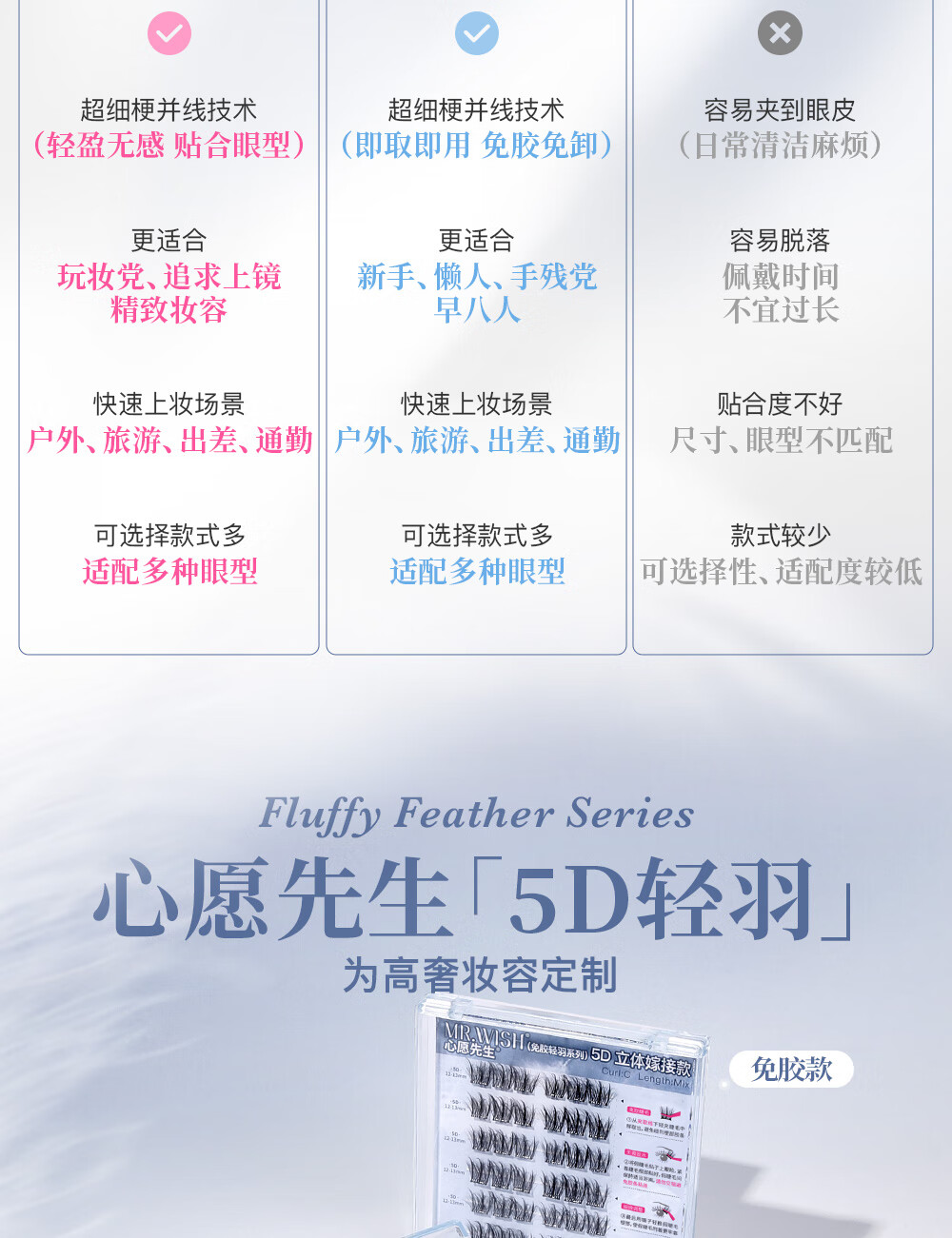 Mr. Wish's glue-free light feather series 5D three-dimensional grafting self-adhesive false eyelashes glue-free light feather 1 box