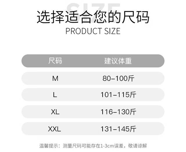 China (cm) 165 / 88-90 170 / 96-98 175 / 108-110 180 / 118-122 185 / 126-130