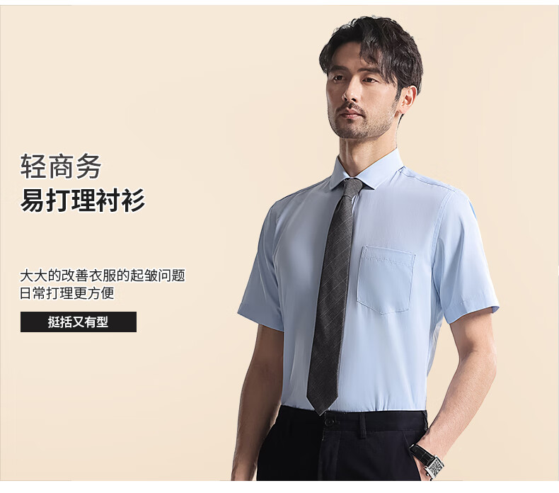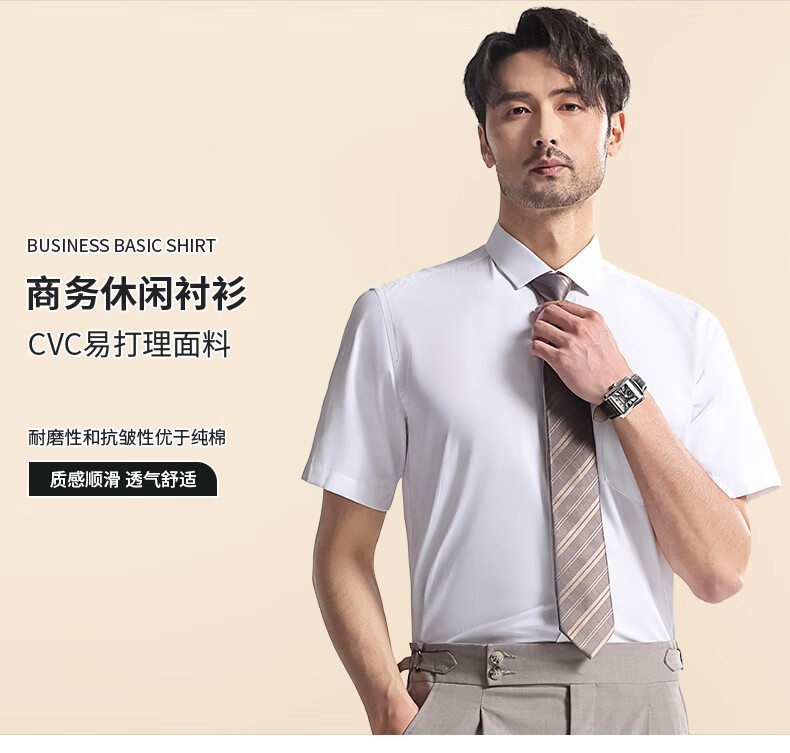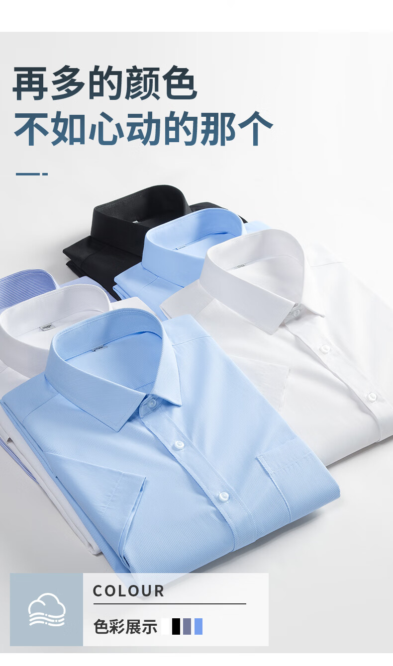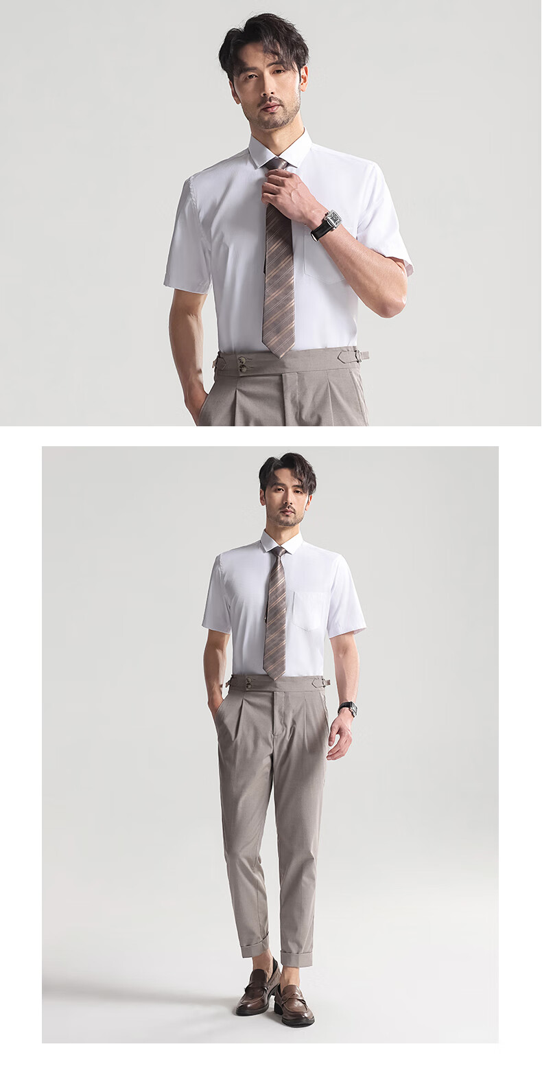 Shanshan shirt men's summer business short-sleeved shirt no-iron solid color lapel casual shirt for men white 1408 42