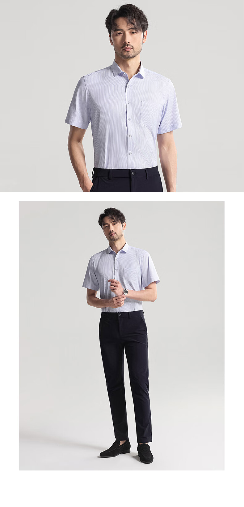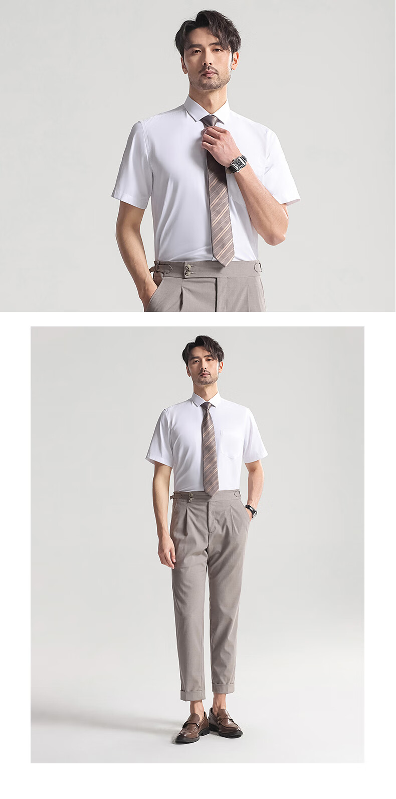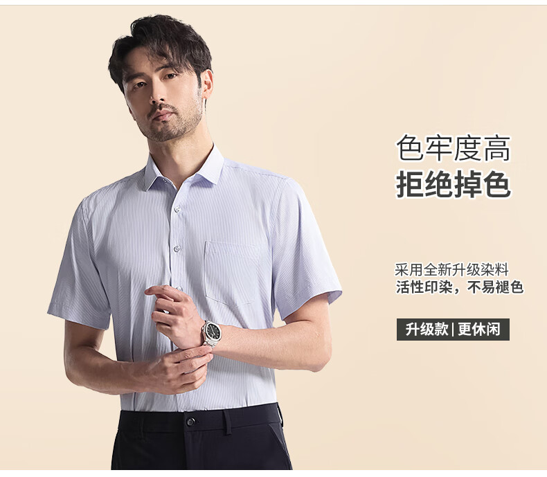 Shanshan shirt men's summer business short-sleeved shirt no-iron solid color lapel casual shirt for men white 1408 42