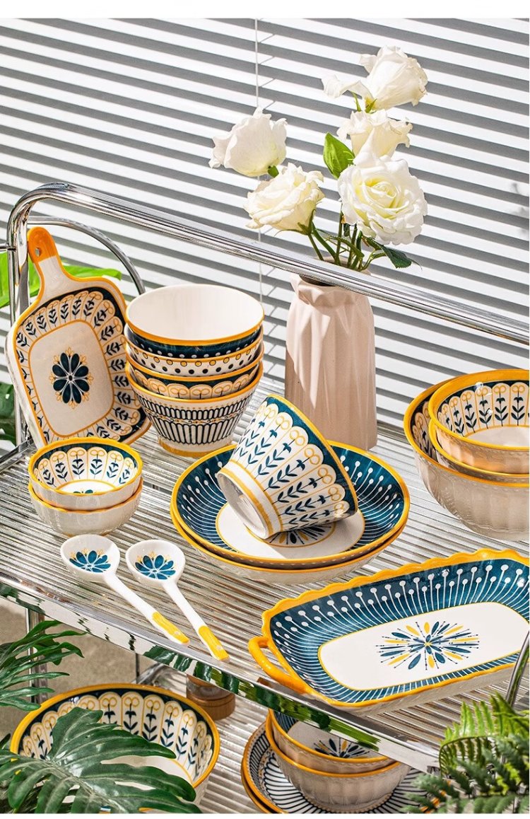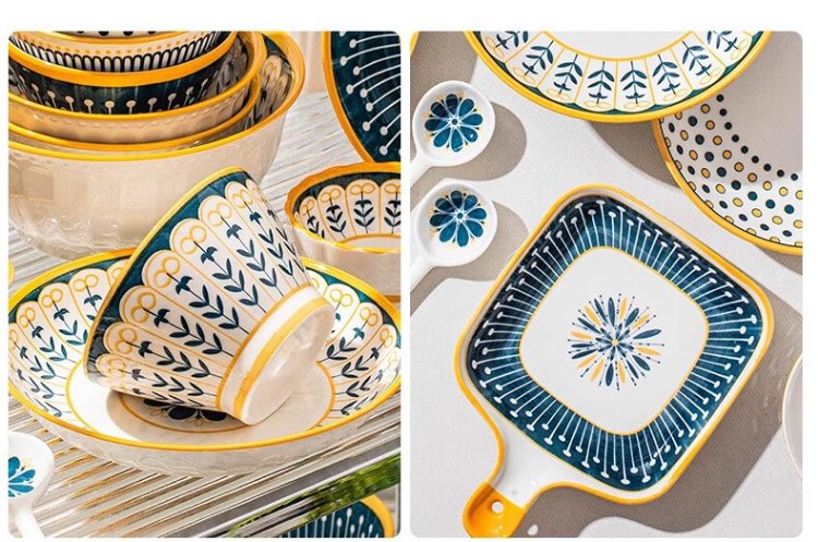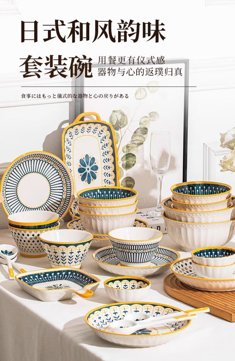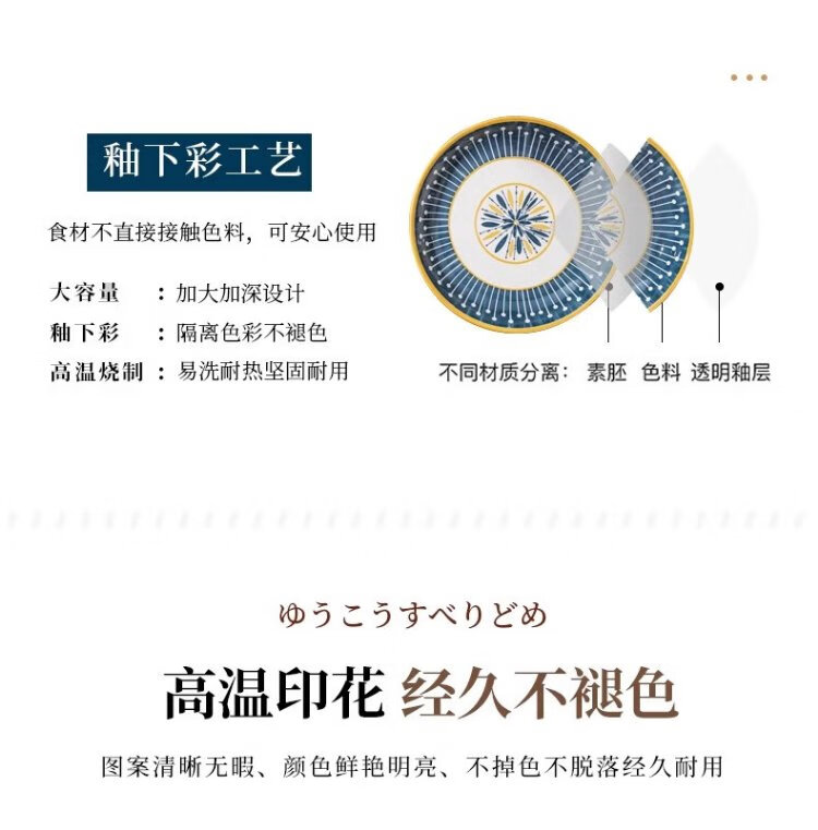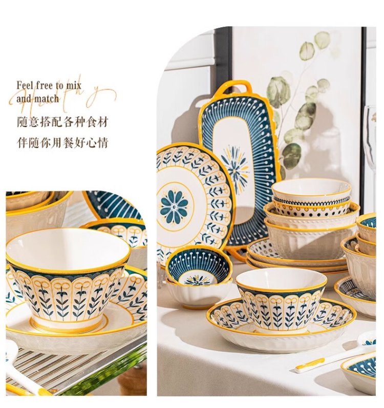 Persson underglaze color bowls, plates, tableware, household Japanese-style ceramic bowls, plates, chopsticks and tableware set for housewarming 16 heads Nordic