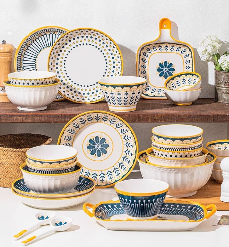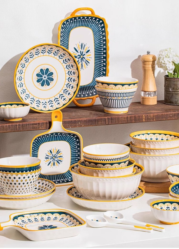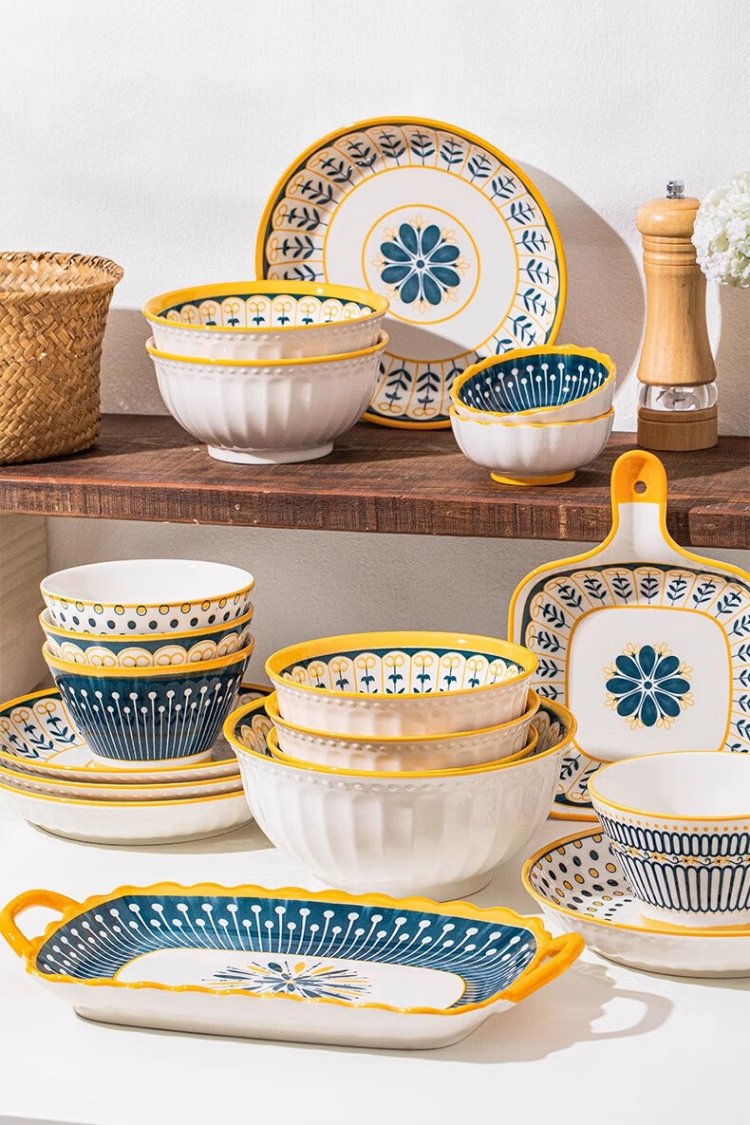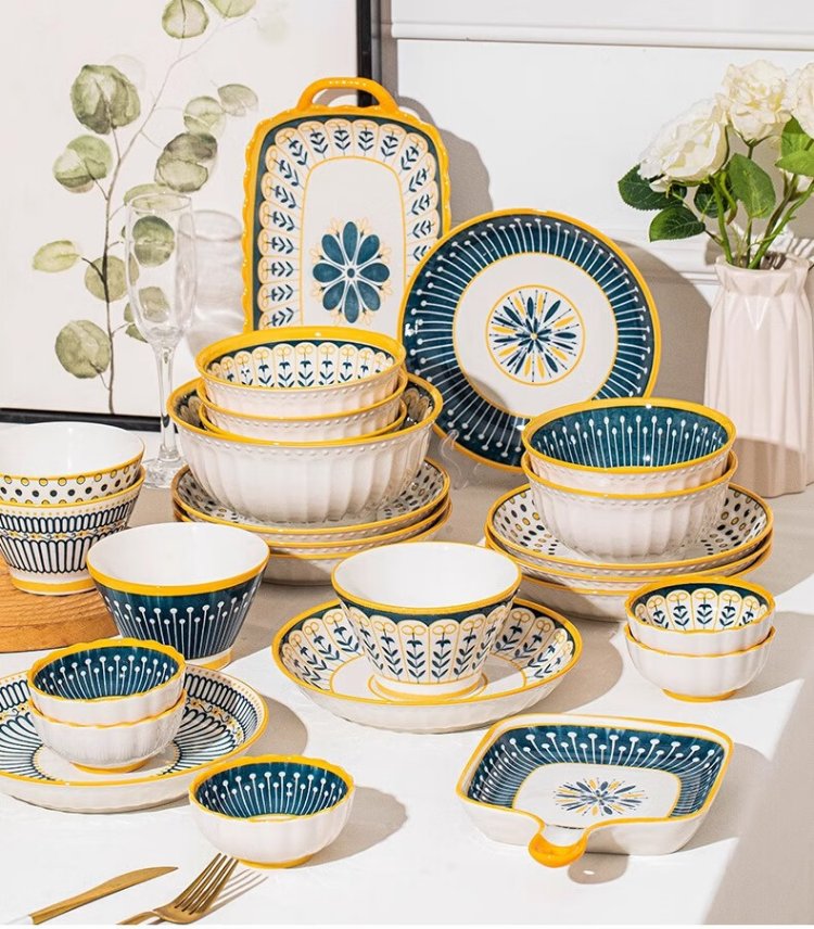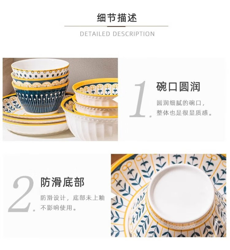 Persson underglaze color bowls, plates, tableware, household Japanese-style ceramic bowls, plates, chopsticks and tableware set for housewarming 16 heads Nordic