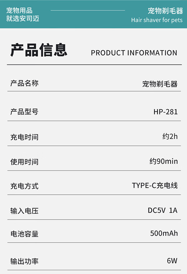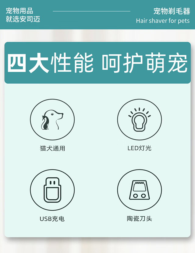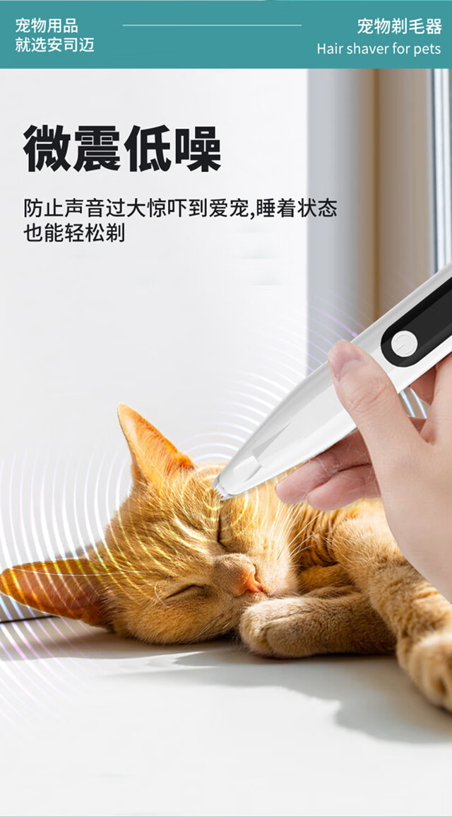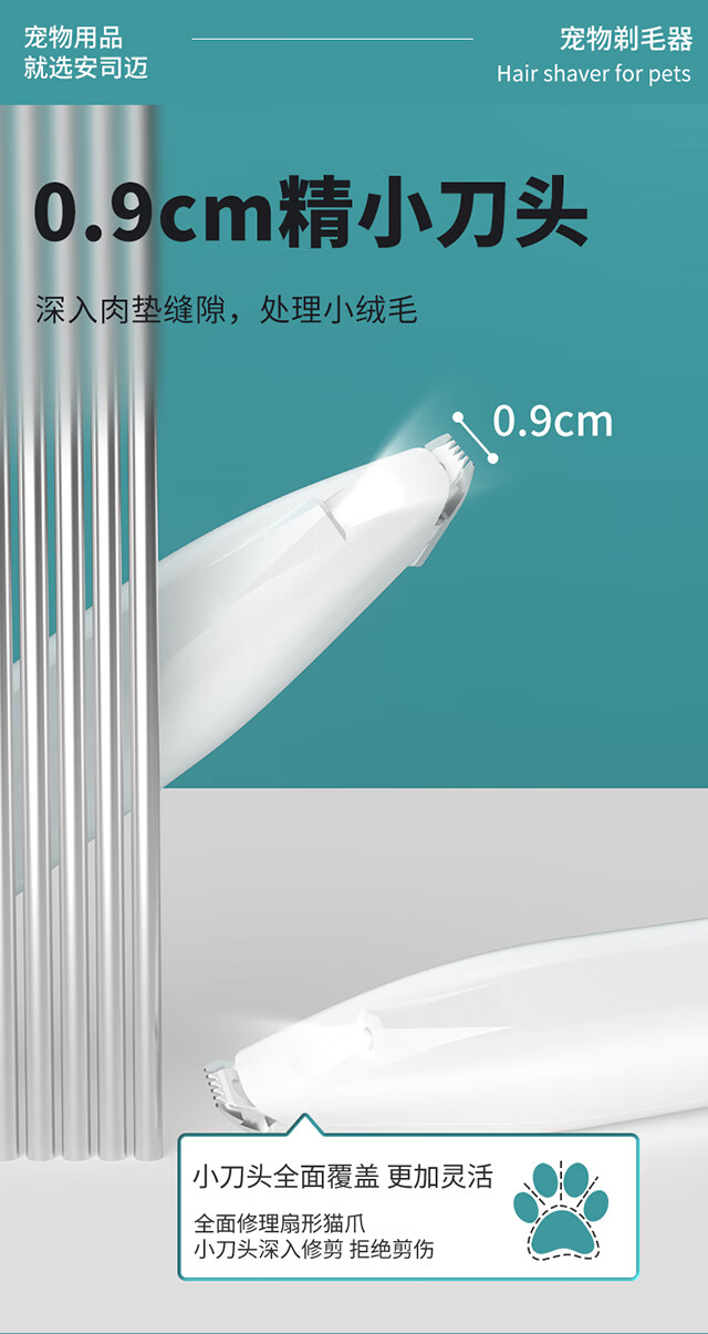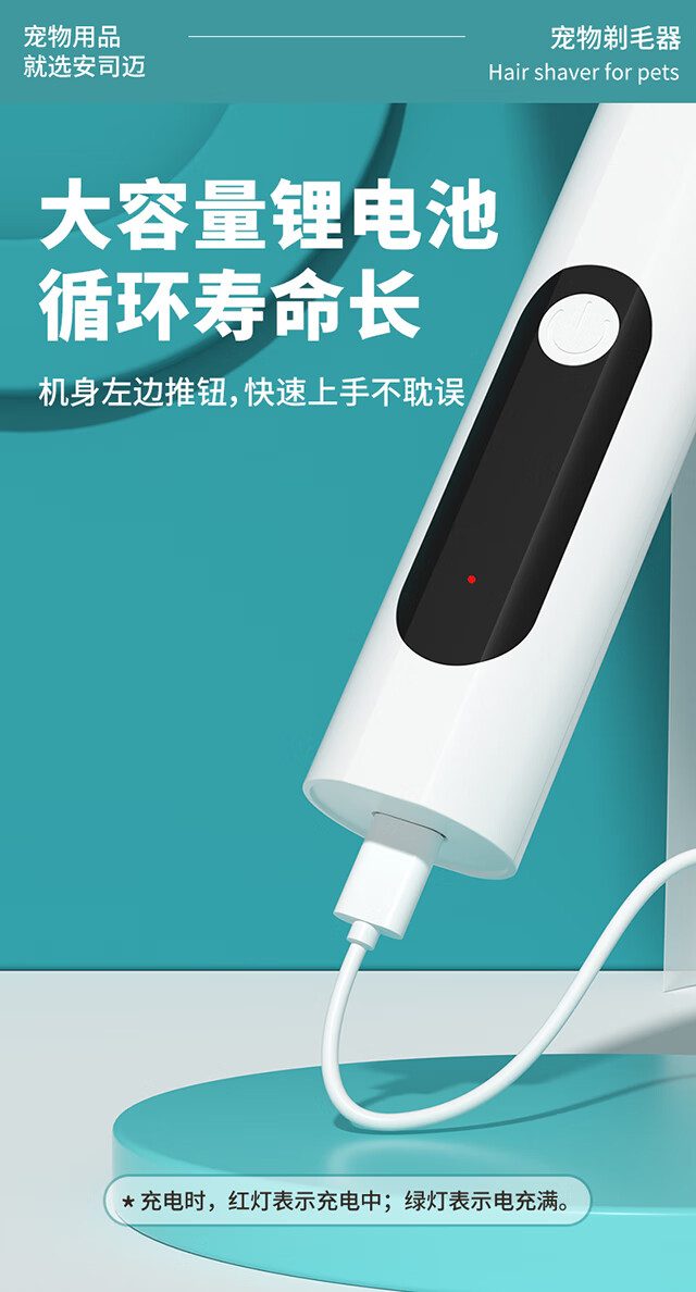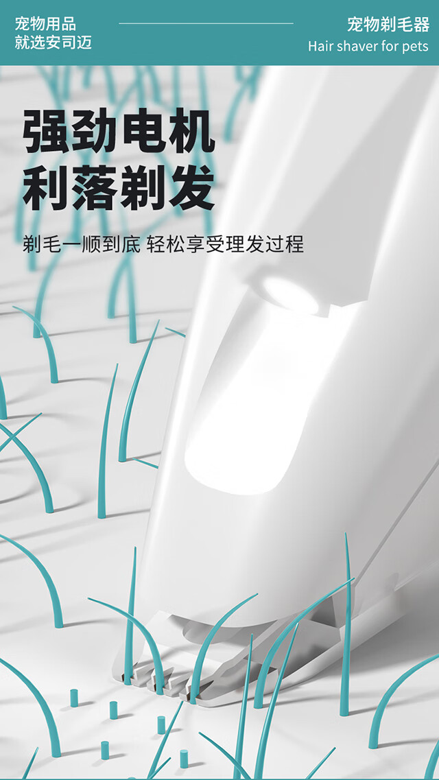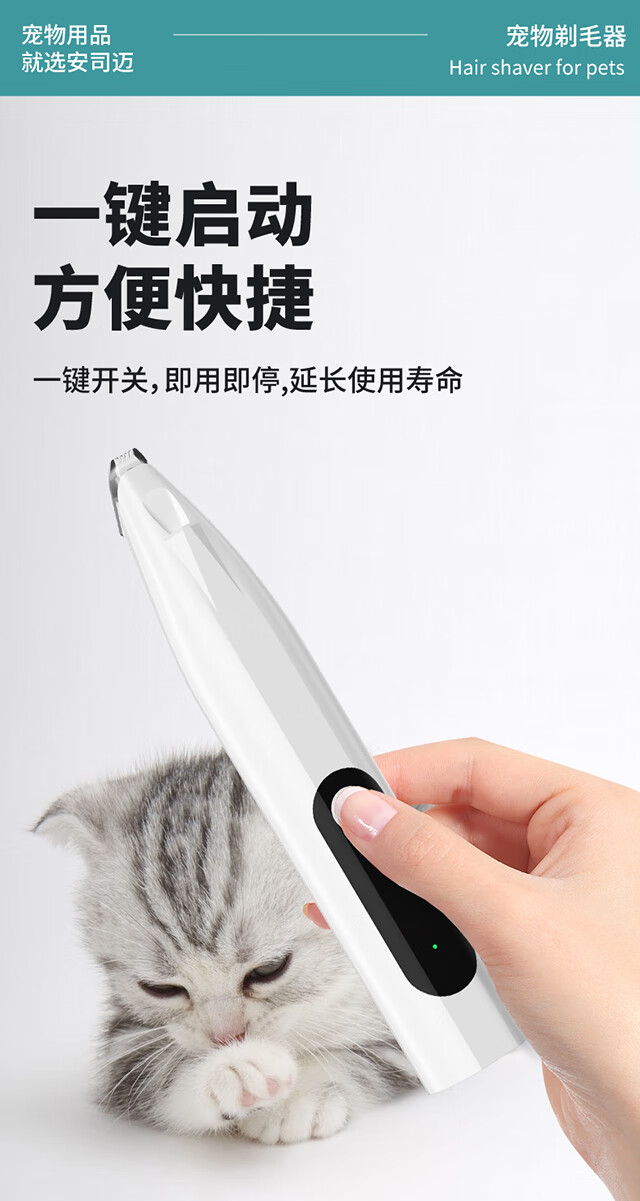 Ansmai pet shaver, cat and dog shaver, electric clipper, hair pusher, foot hair tool, white rechargeable model