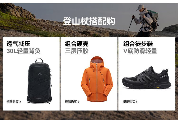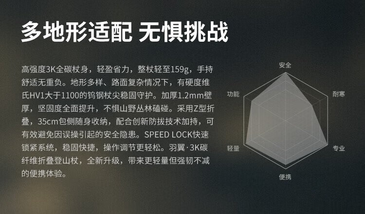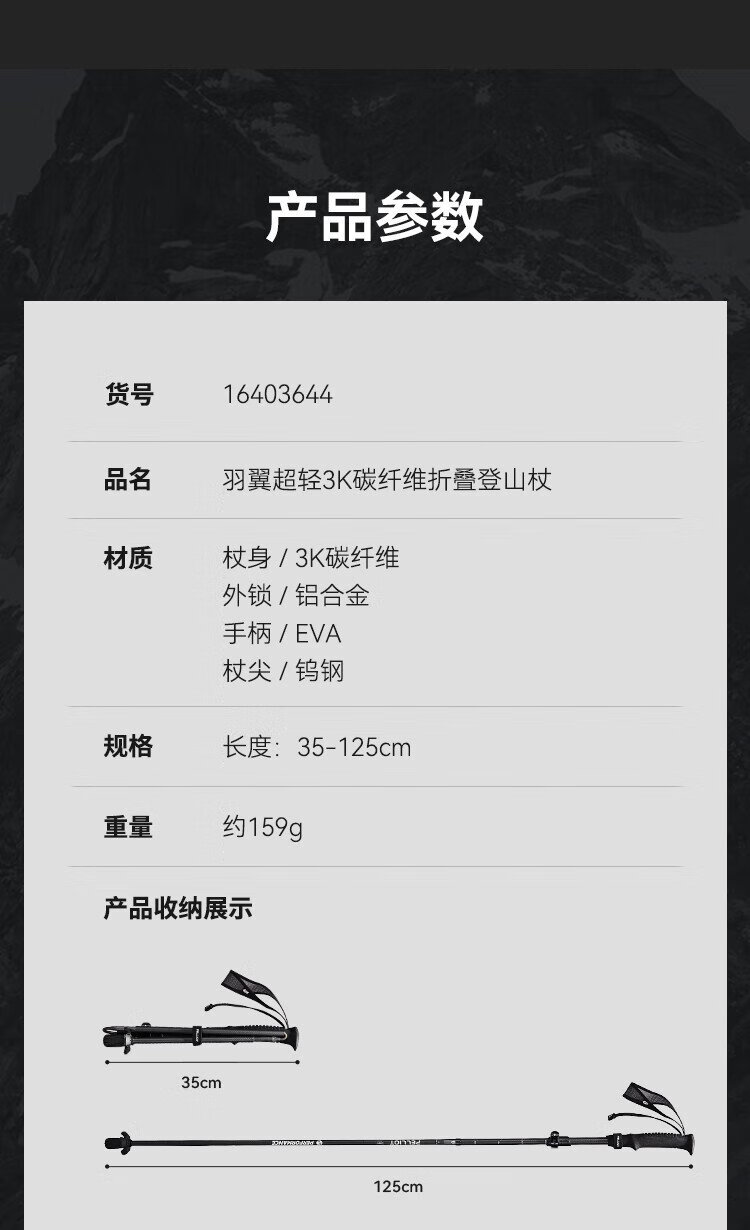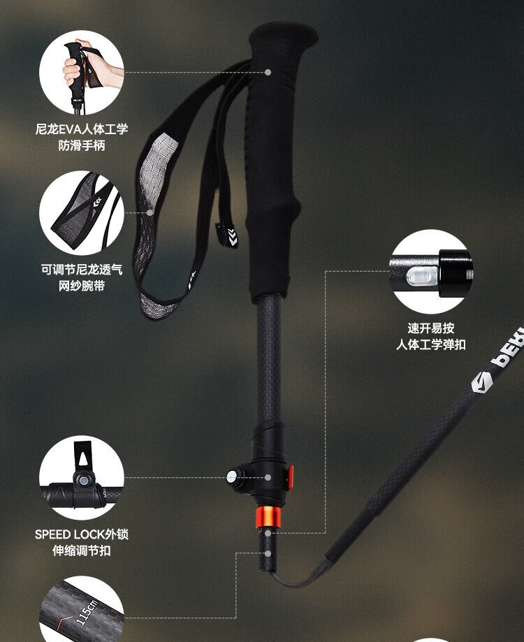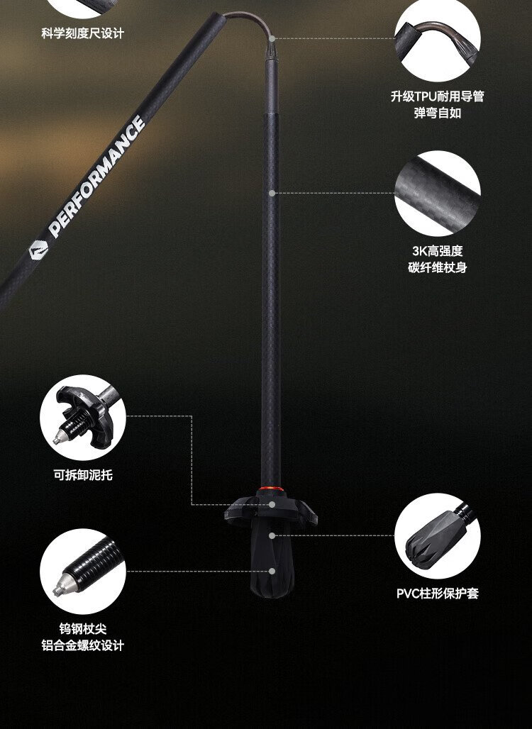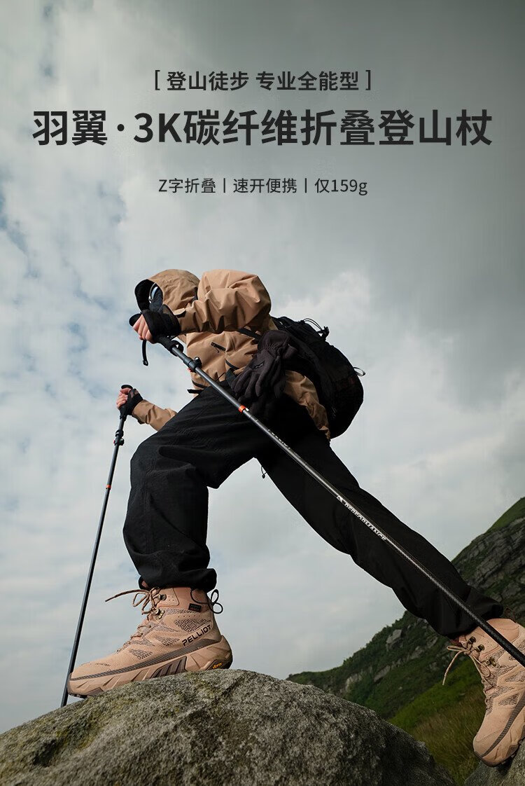Pelliot Wings outdoor 3K carbon fiber trekking poles foldable ultra-light hiking pole equipment 16403644 orange red