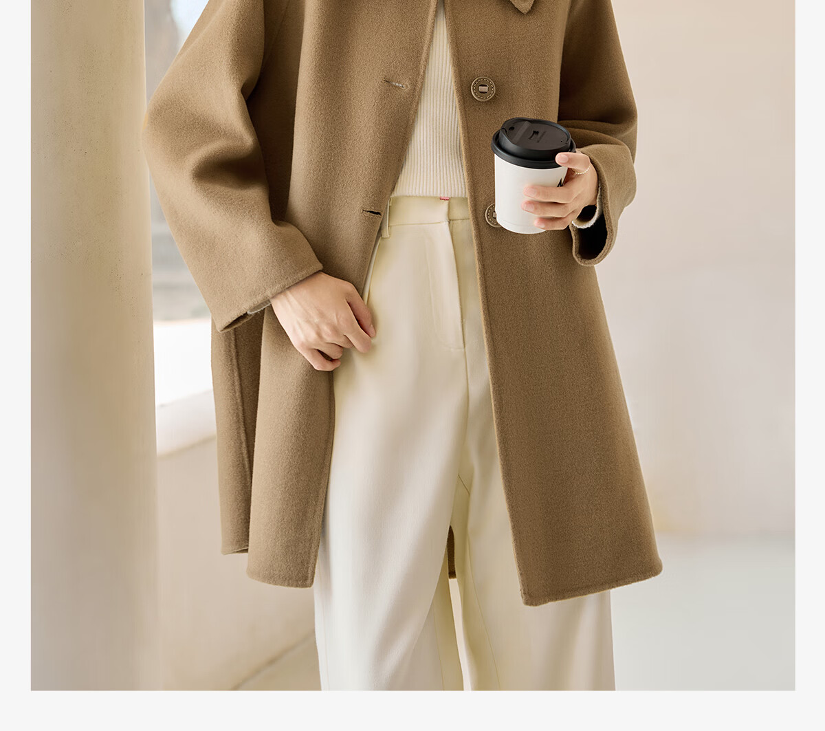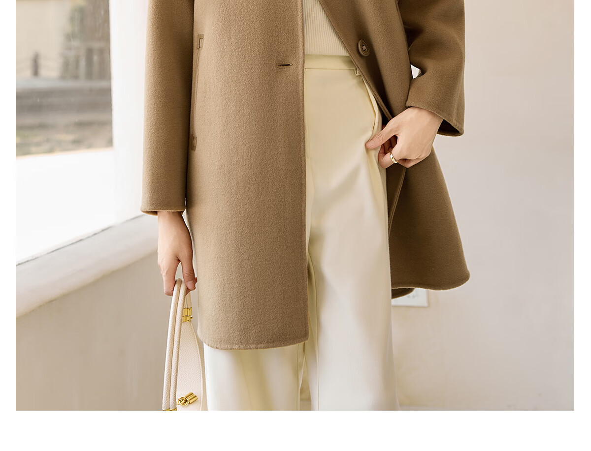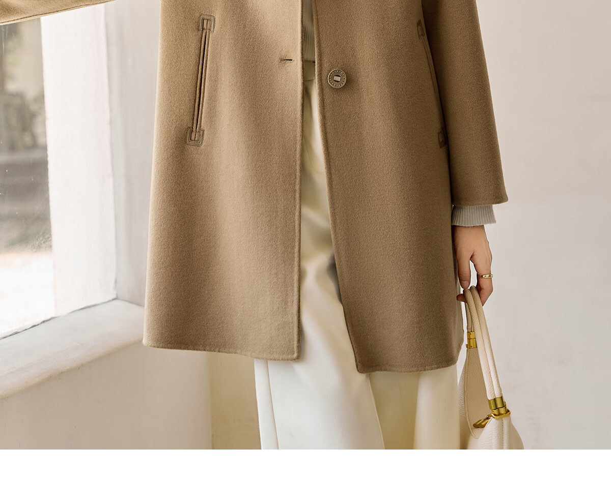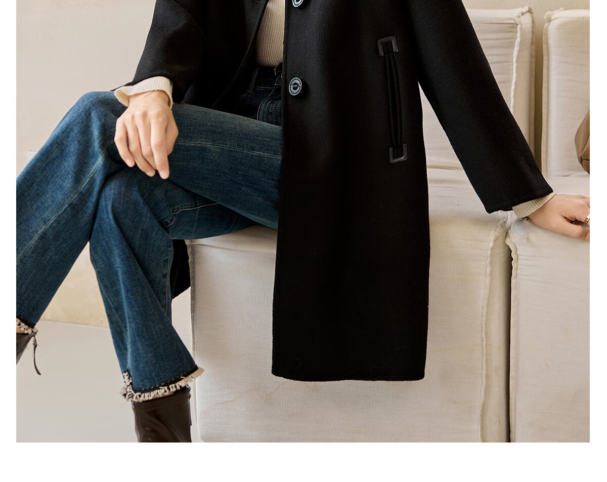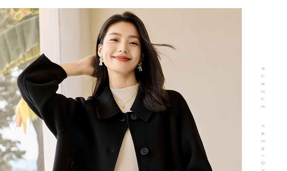 Chushen 100% pure wool woolen coat for women, versatile commuting thick and warm double-sided woolen coat jacket S144G1016