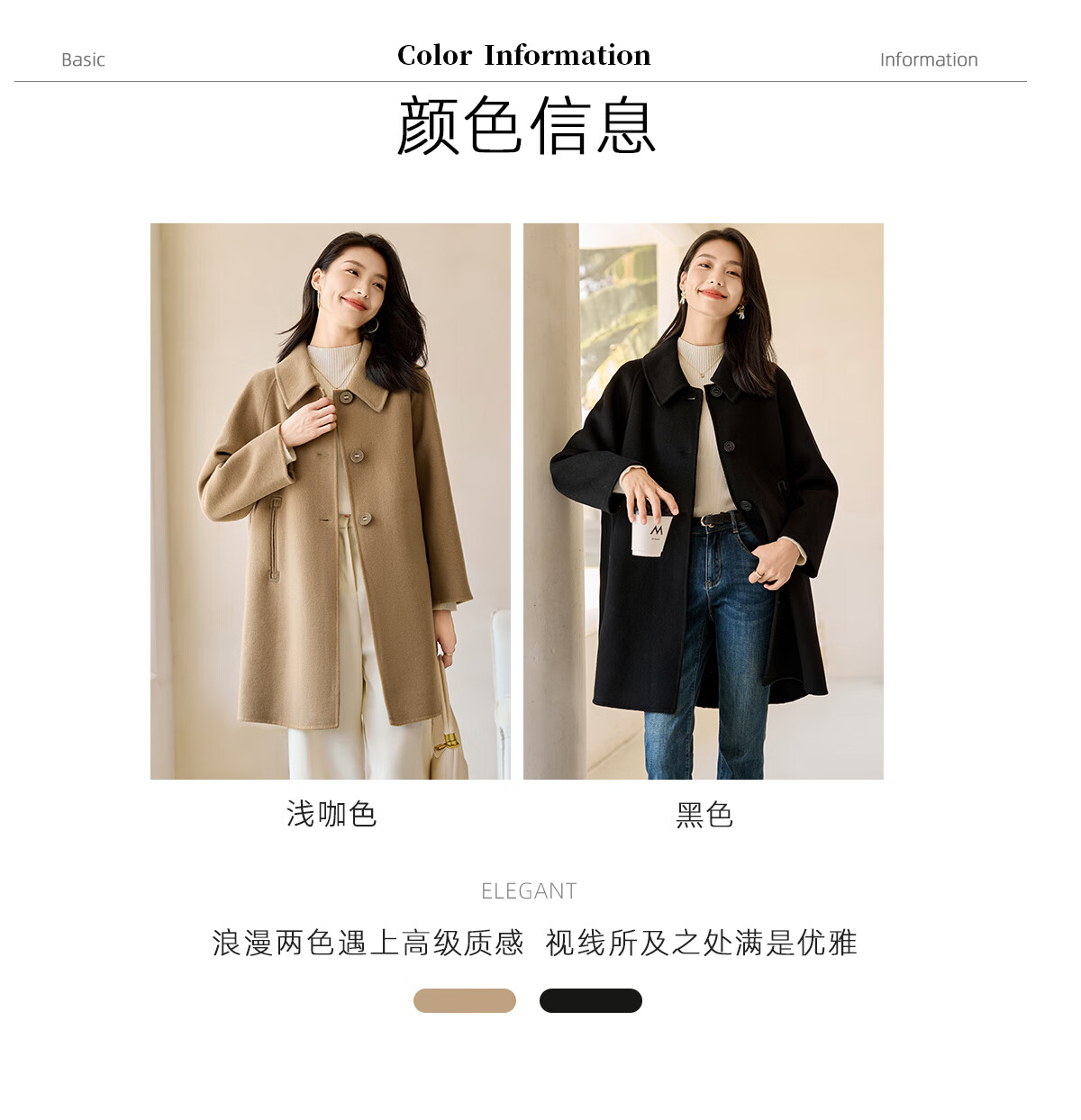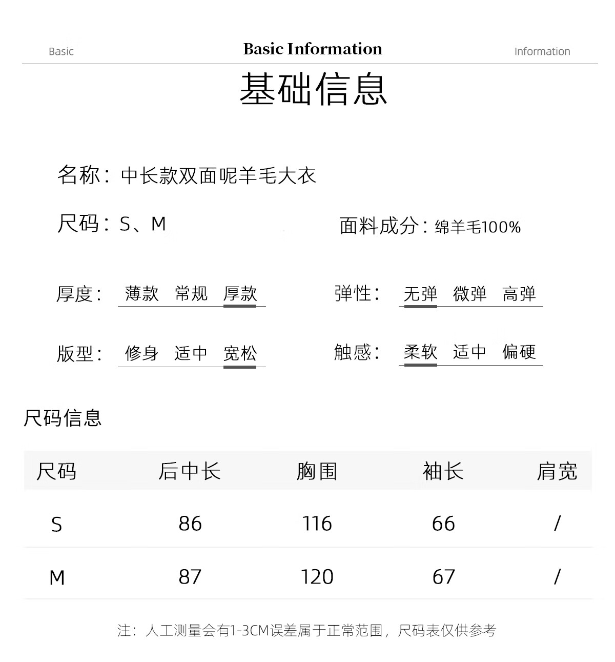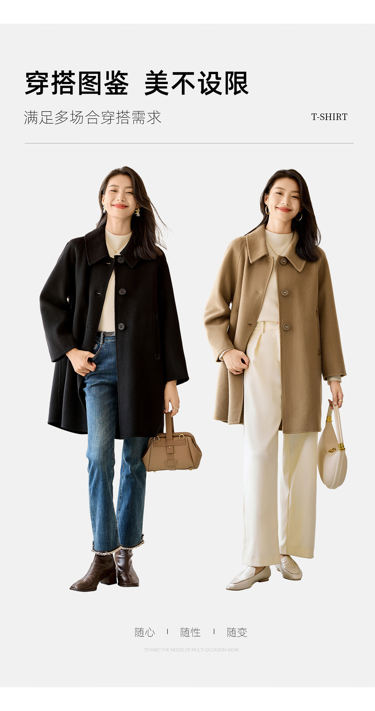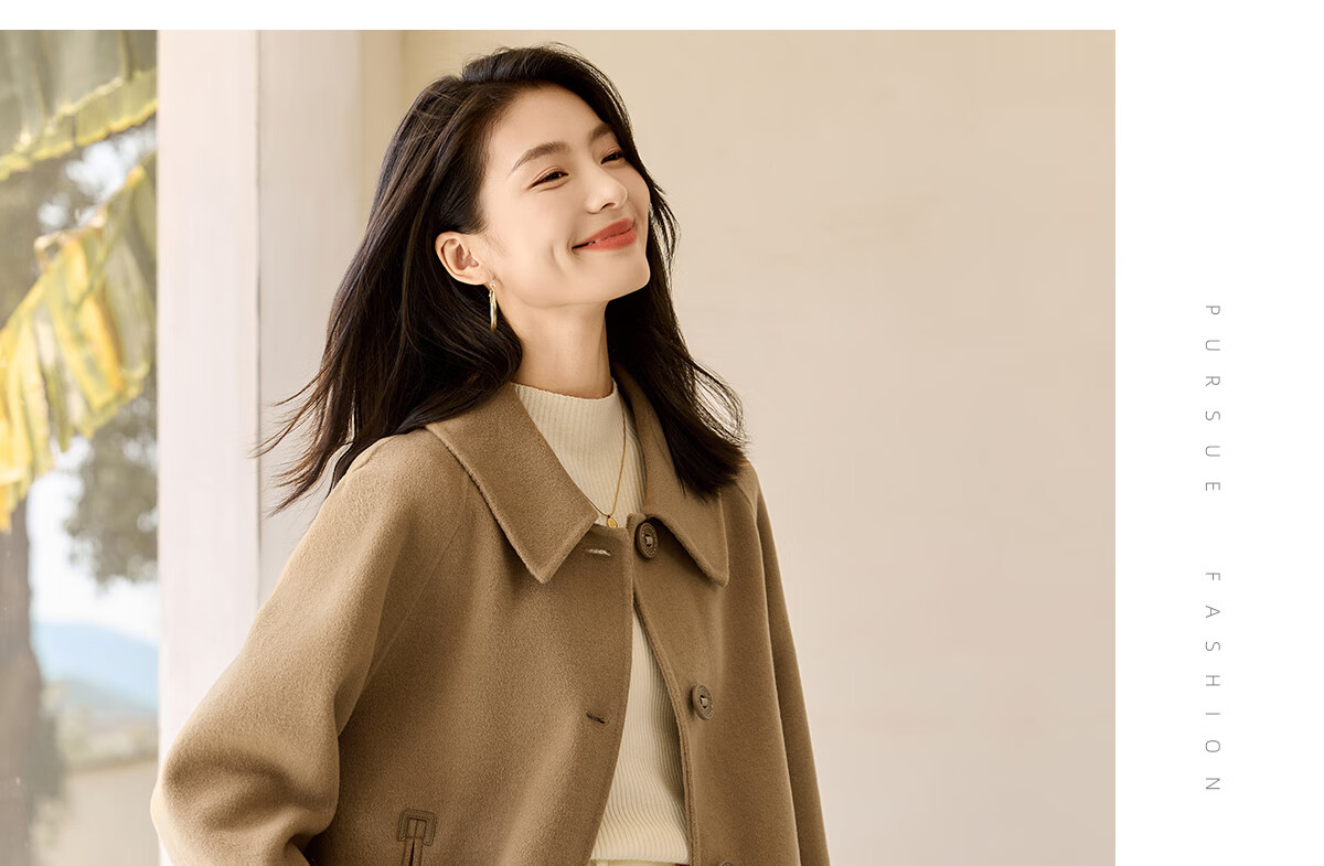 Chushen 100% pure wool woolen coat for women, versatile commuting thick and warm double-sided woolen coat jacket S144G1016