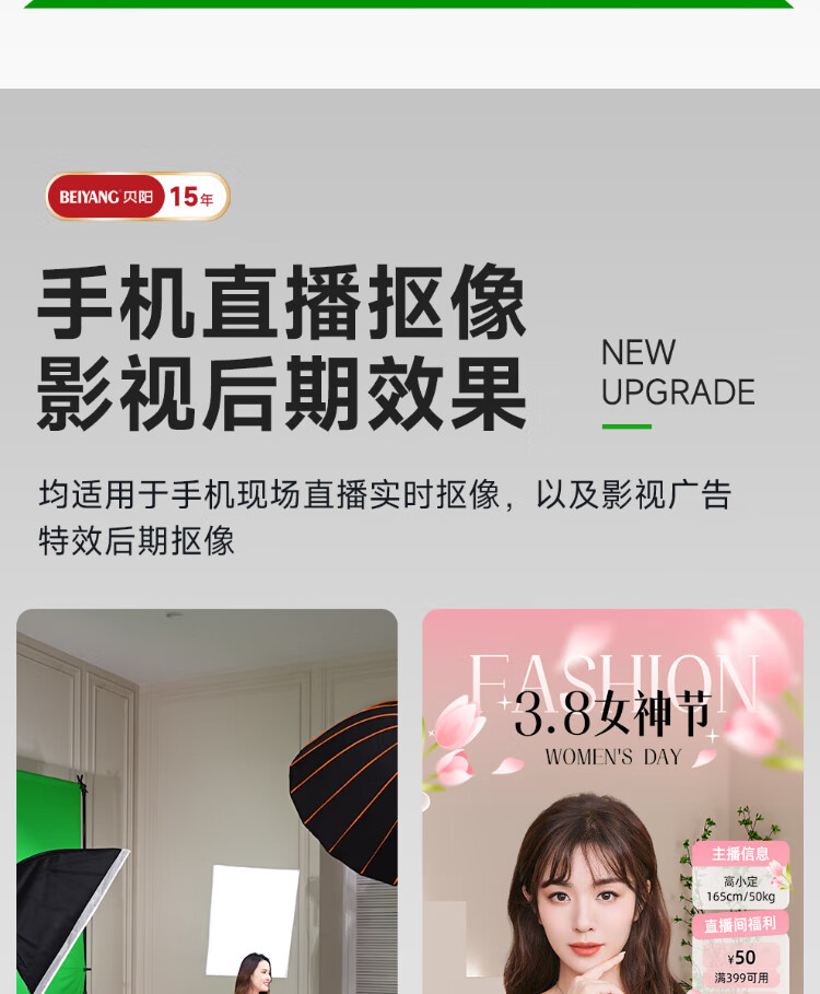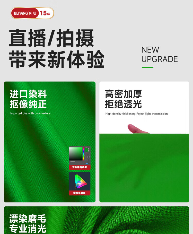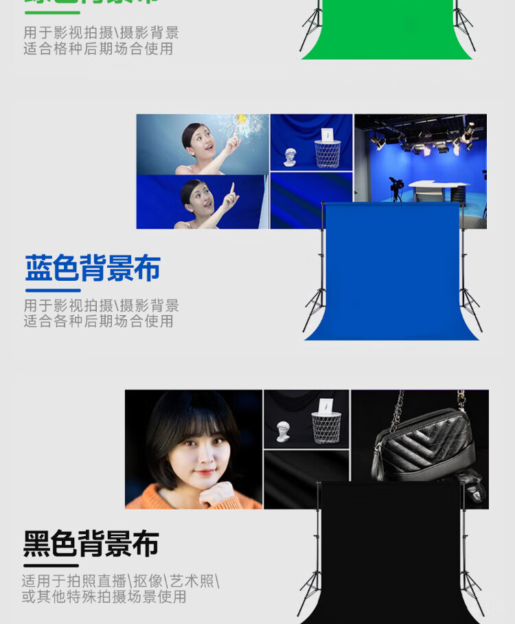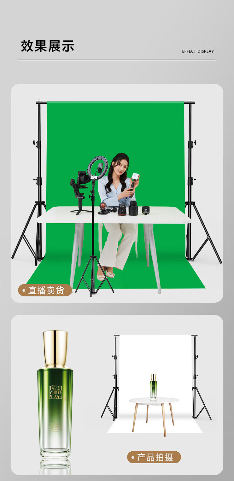 Beiyang Professional Live Broadcast Green Screen Keying Cloth Belt Bracket Equipment Set Thickened Solid Color Green Cloth Background Cloth Photography Cloth Portable Douyin Recording Video Background Stand