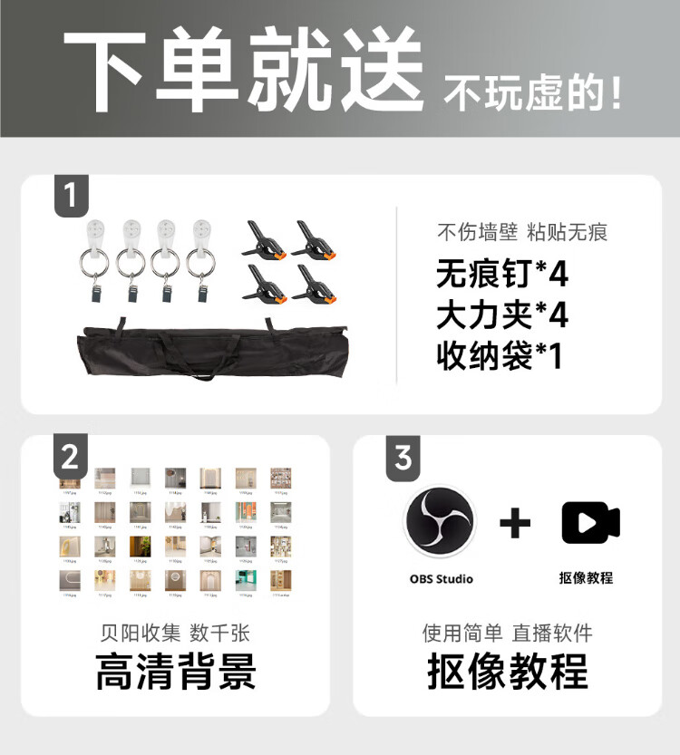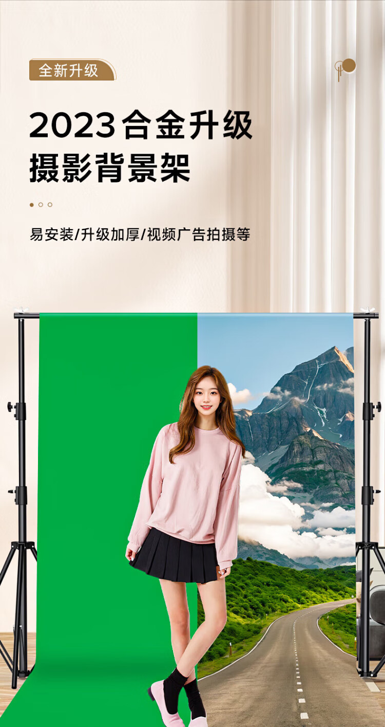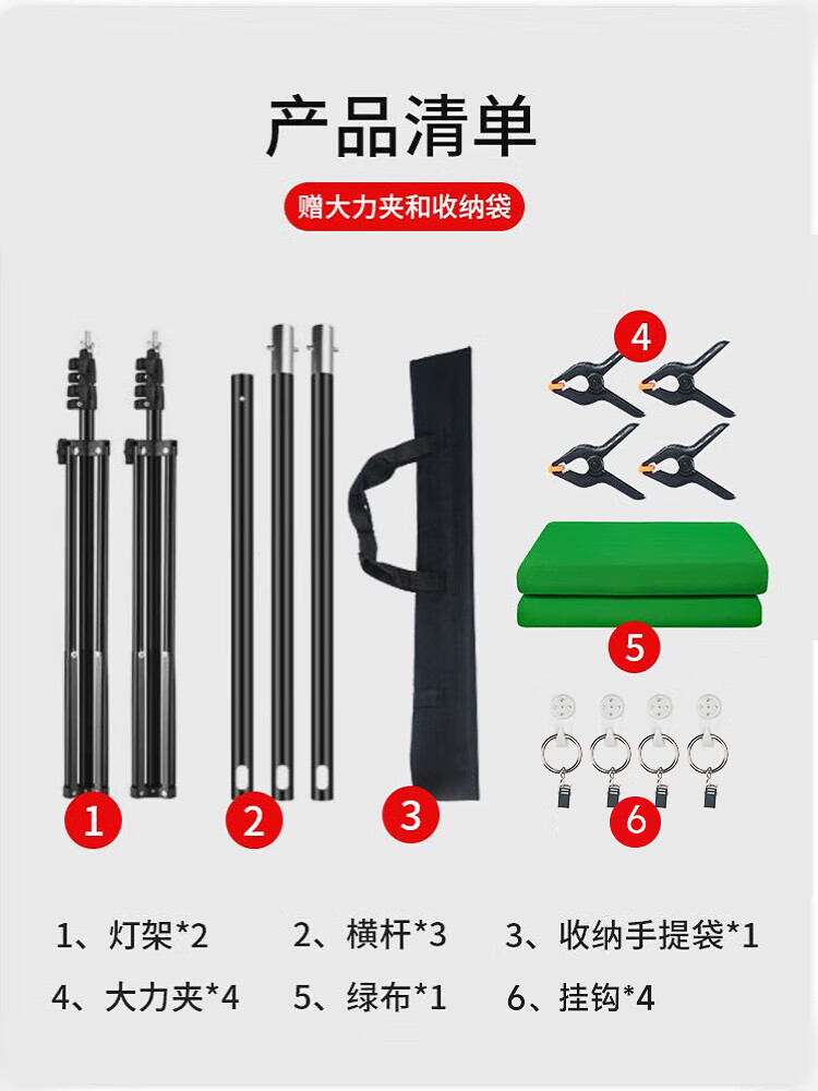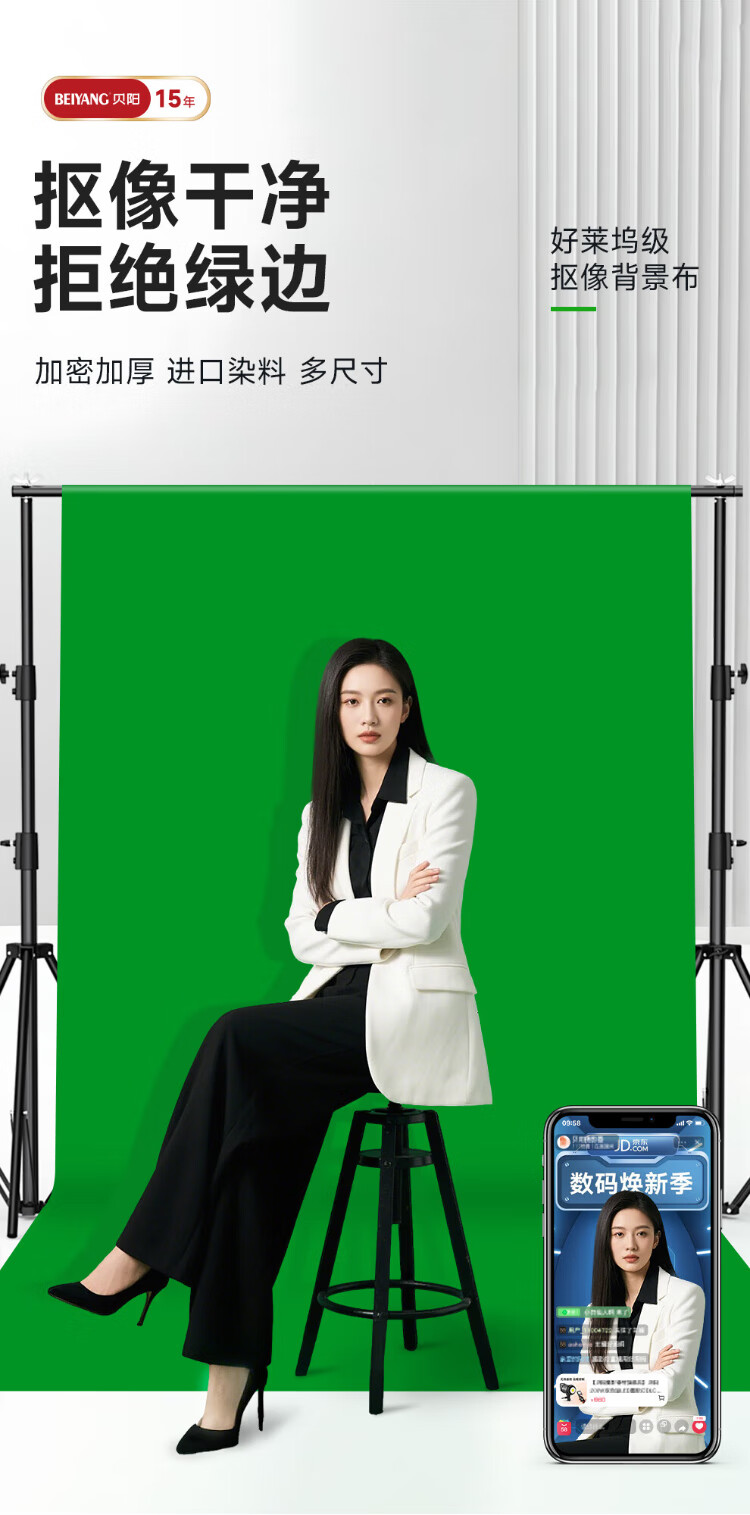 Beiyang Professional Live Broadcast Green Screen Keying Cloth Belt Bracket Equipment Set Thickened Solid Color Green Cloth Background Cloth Photography Cloth Portable Douyin Recording Video Background Stand