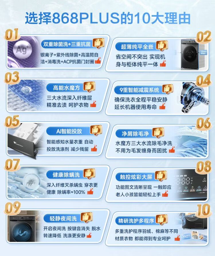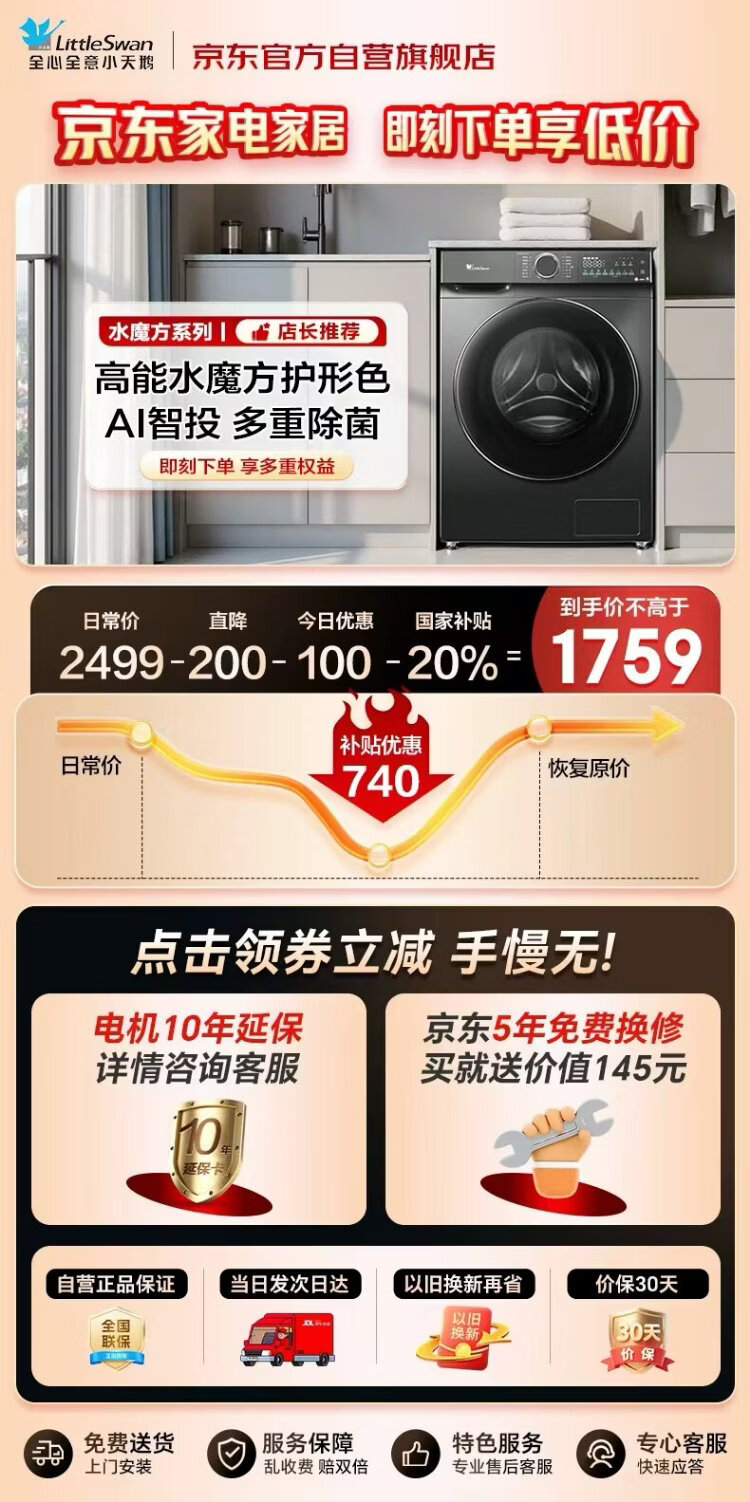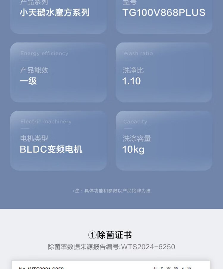 LittleSwan drum washing machine fully automatic household 10KG large capacity Water Cube TG100V868PLUS ultra-thin bacteria mite removal trade-in national subsidy OCC