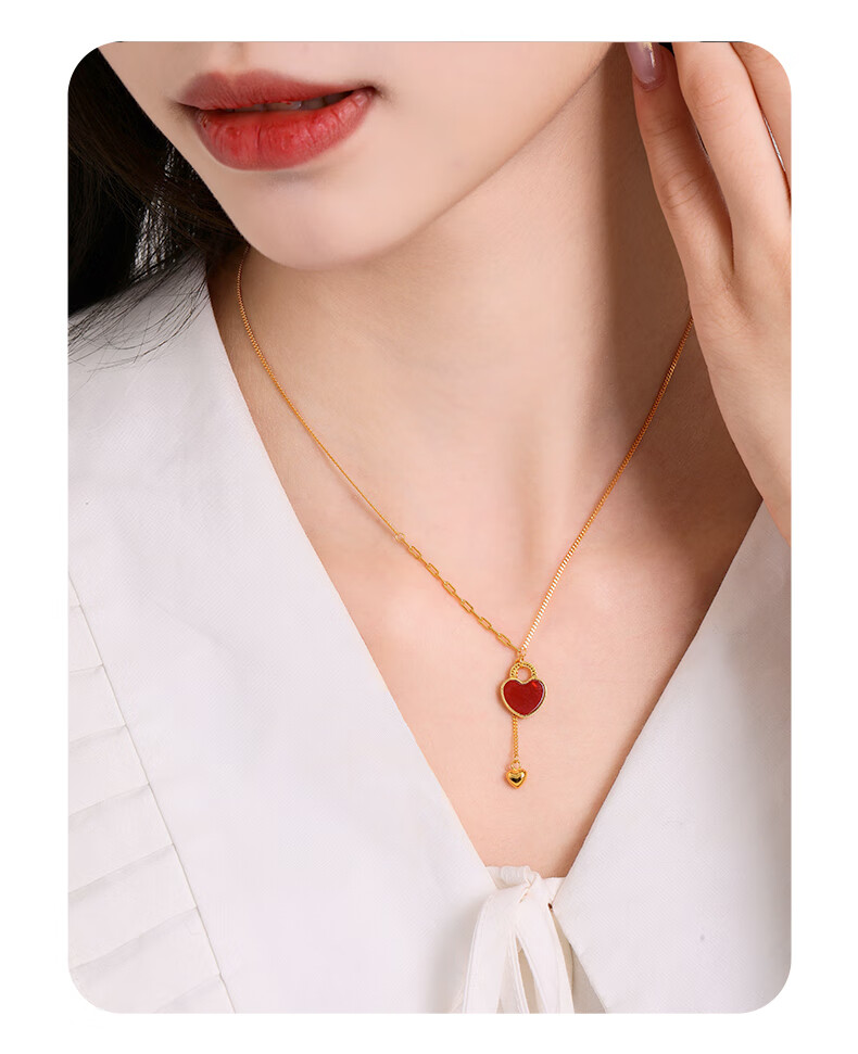 Zhou Taisheng's small red heart necklace silver light luxury niche red agate love clavicle chain as a birthday gift for his girlfriend
