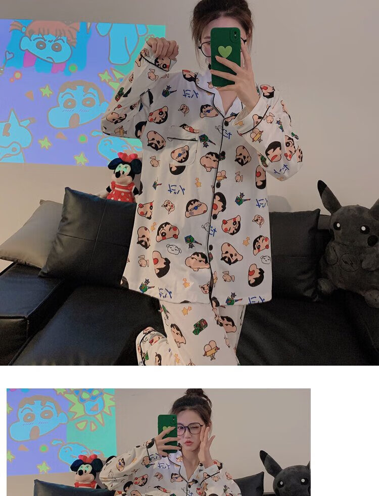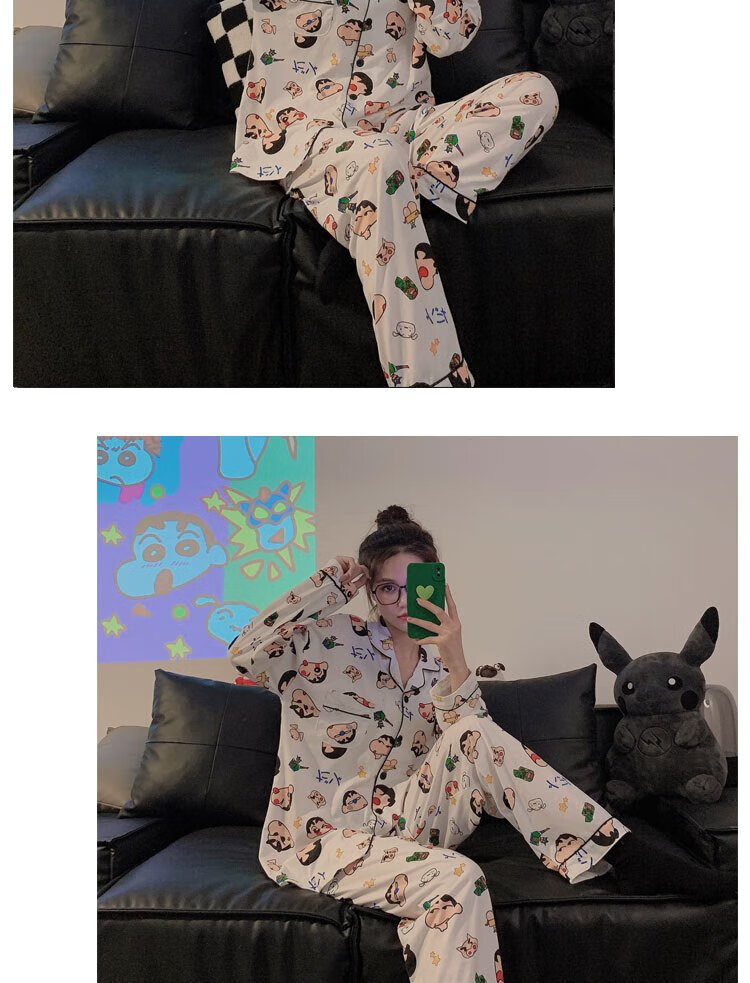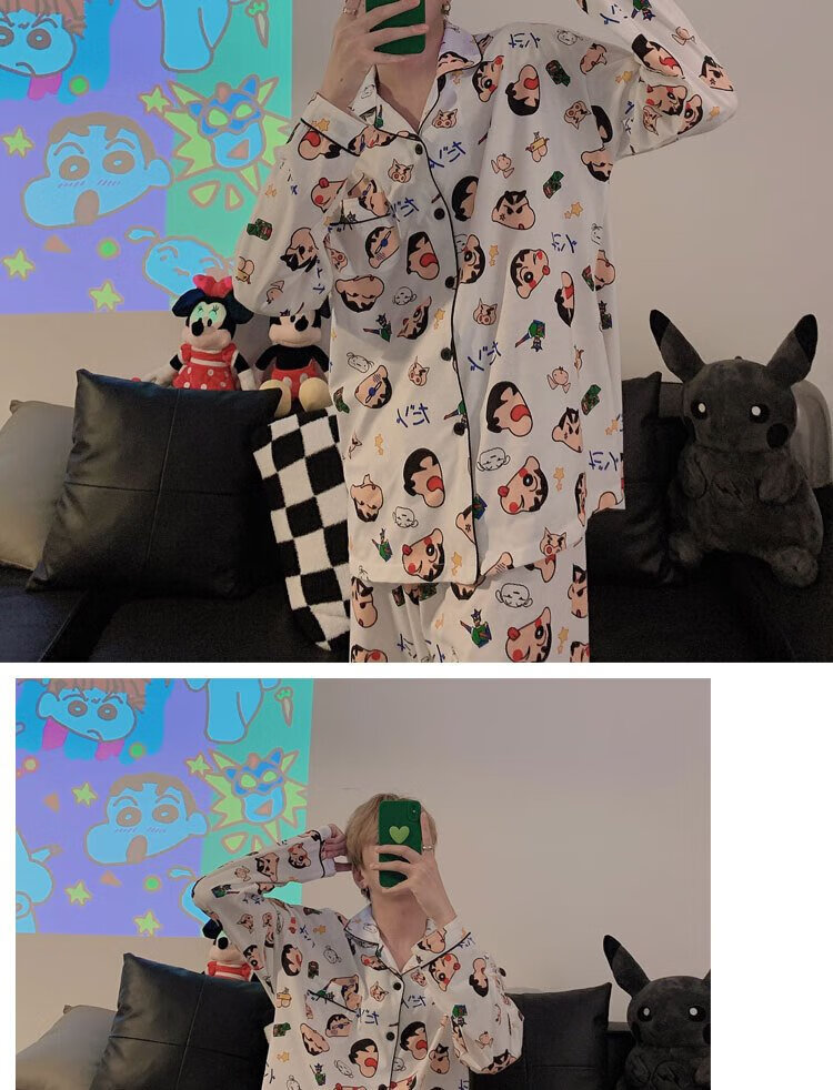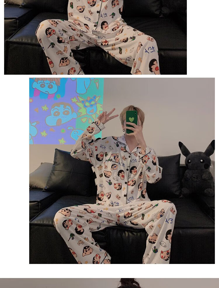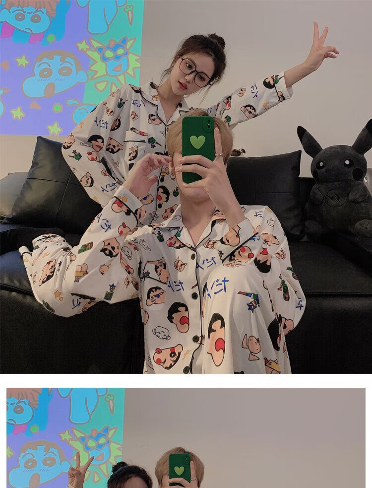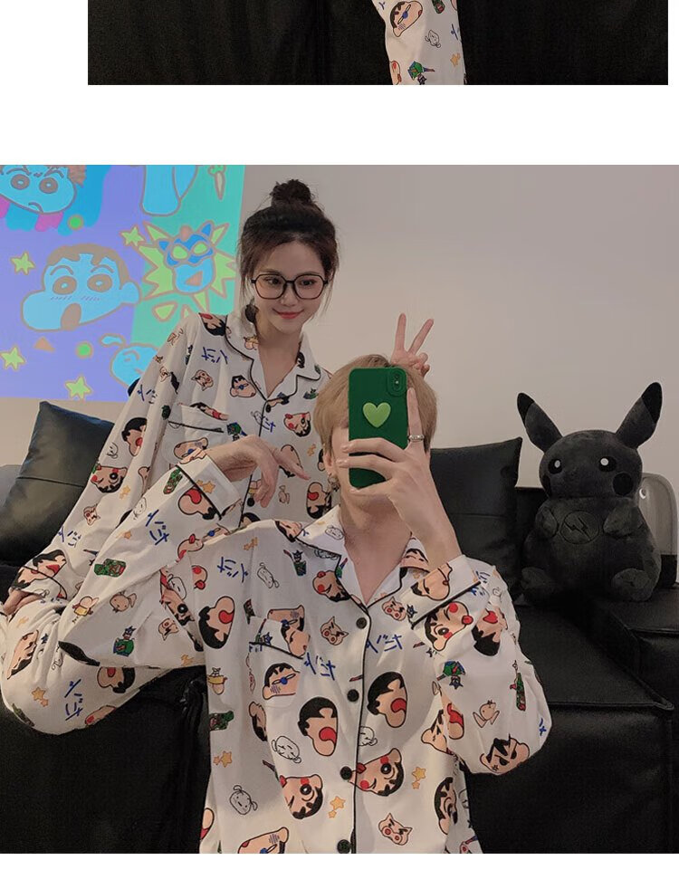 Yu Zhaolin couple pajamas men's autumn and winter Crayon Shin-chan pajamas women's cotton long-sleeved cartoon home clothes set can be worn outside