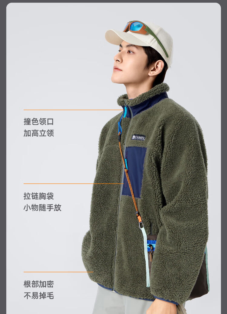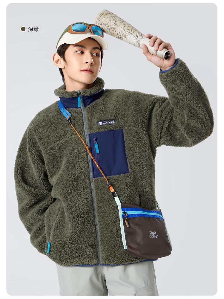 Camel (CAMEL) men's polar fleece jacket men's autumn and winter fleece jacket fashion casual warm fleece jacket M34CA22741