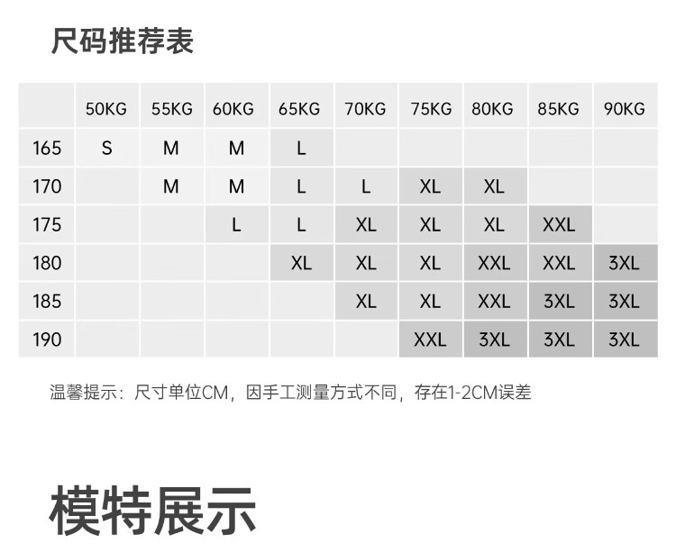 China (cm) 165 / 88-90 170 / 96-98 175 / 108-110 180 / 118-122 185 / 126-130