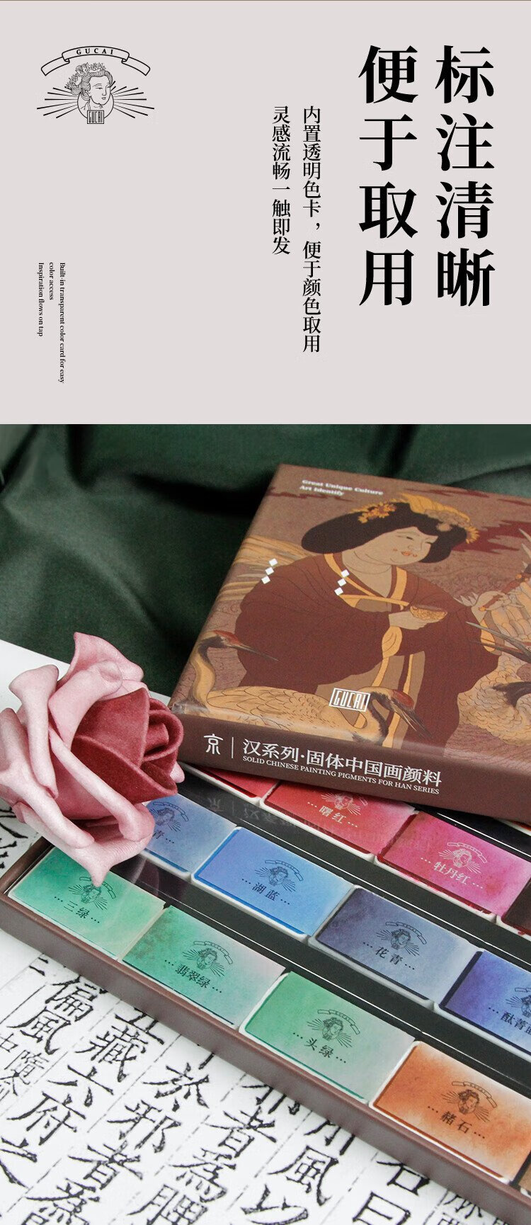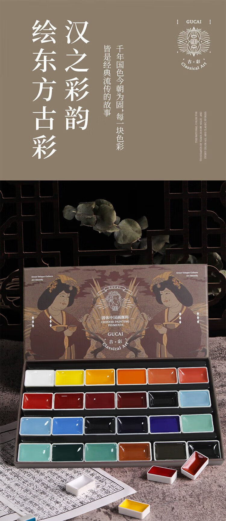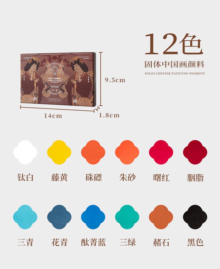 Rubens 12-color Chinese painting paint set entry-level ancient color Jinghan series solid watercolor gouache pigment children's Chinese ink painting tools 0138001035