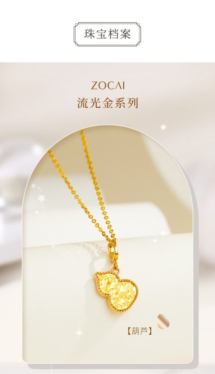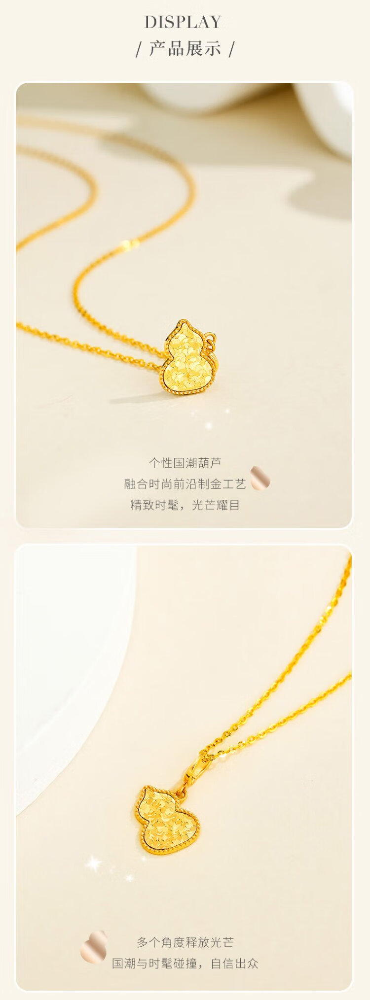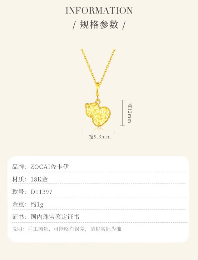 Zokayi yellow 18K gold pendant crushed ice gourd necklace Chinese style birthday gift D11397