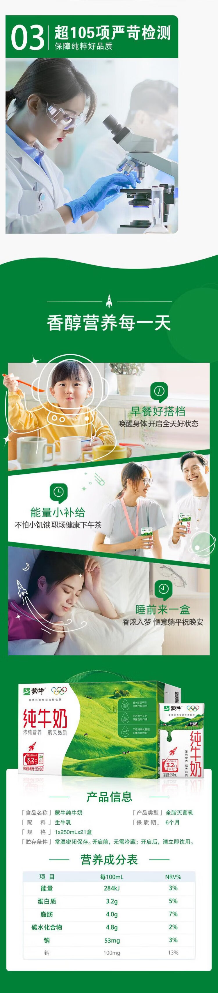 Mengniu whole milk pure milk 250ml*21 boxes breakfast fitness companion new year gift box