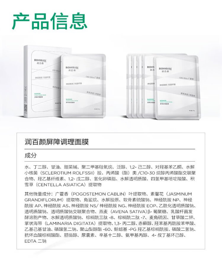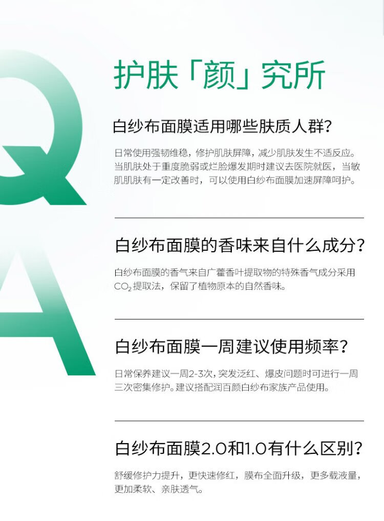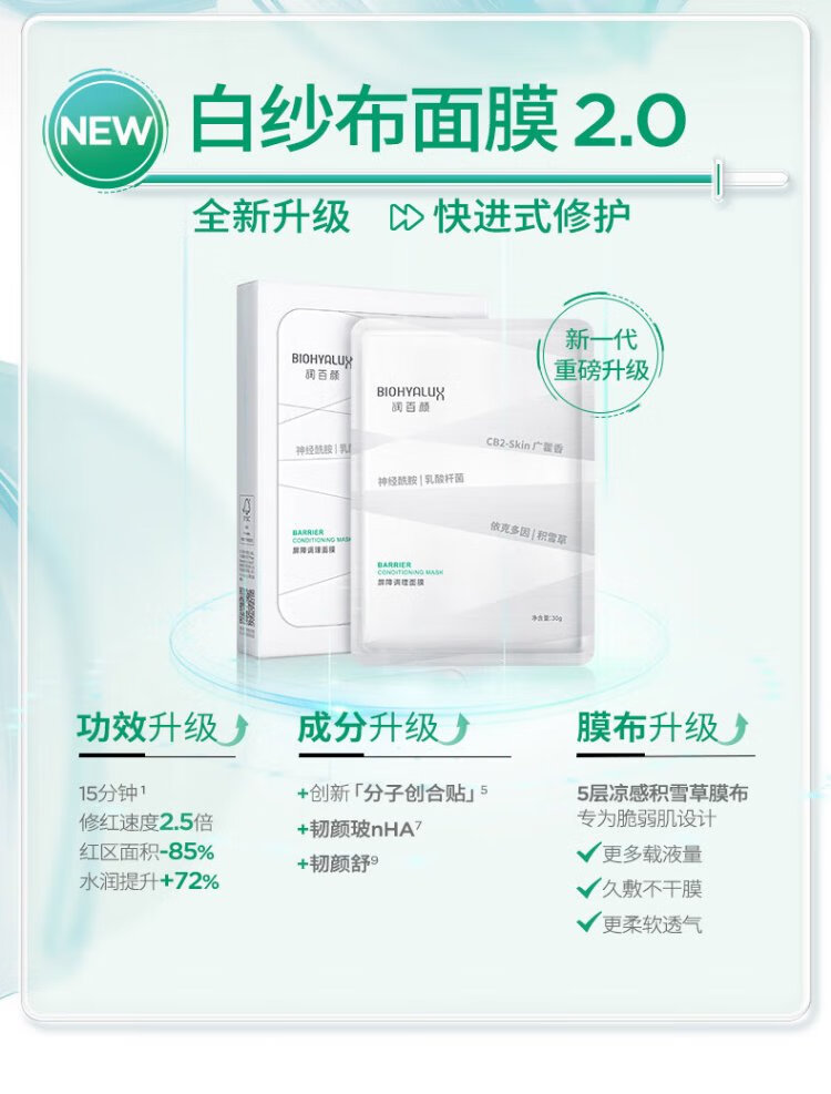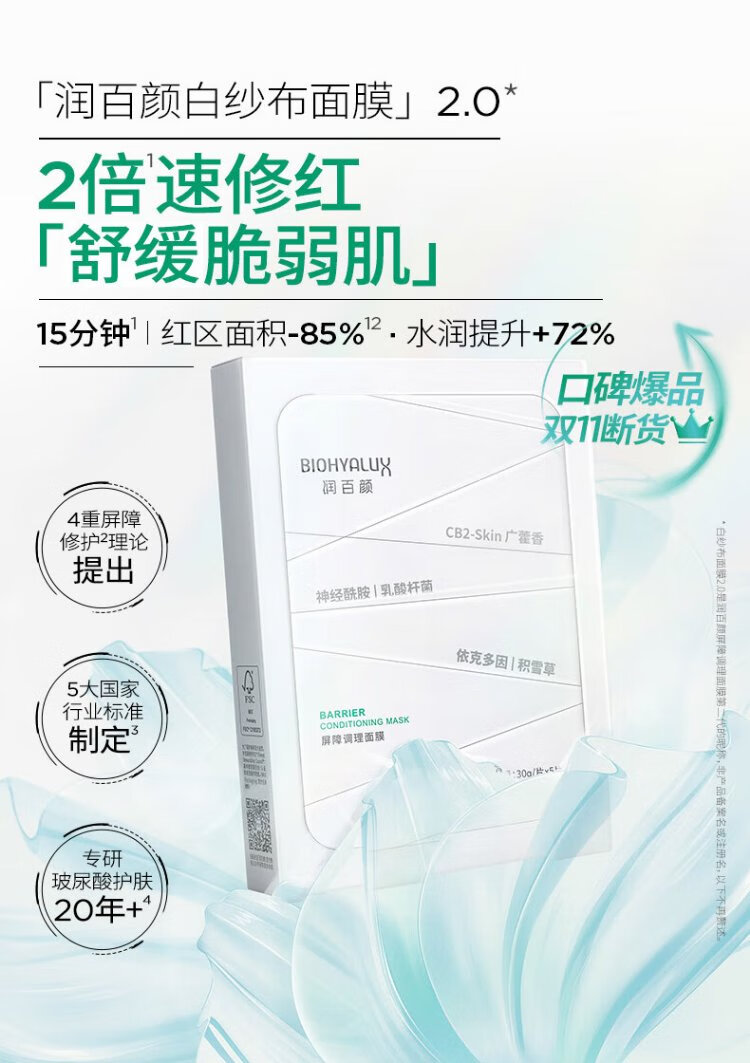 Runbaiyan Huaxi Biological Barrier Conditioning White Gauze 2.0 Mask 20 pieces, hydrating, soothing, after-sun repair, gift for men and women
