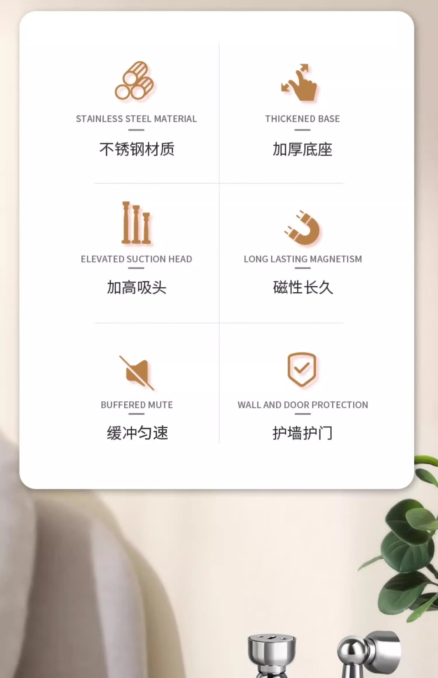 Thousand-speed wheel 304 stainless steel door suction no punching strong magnetic suction bathroom concierge door cabinet door anti-collision artifact door suction 9.7cm 304 stainless steel