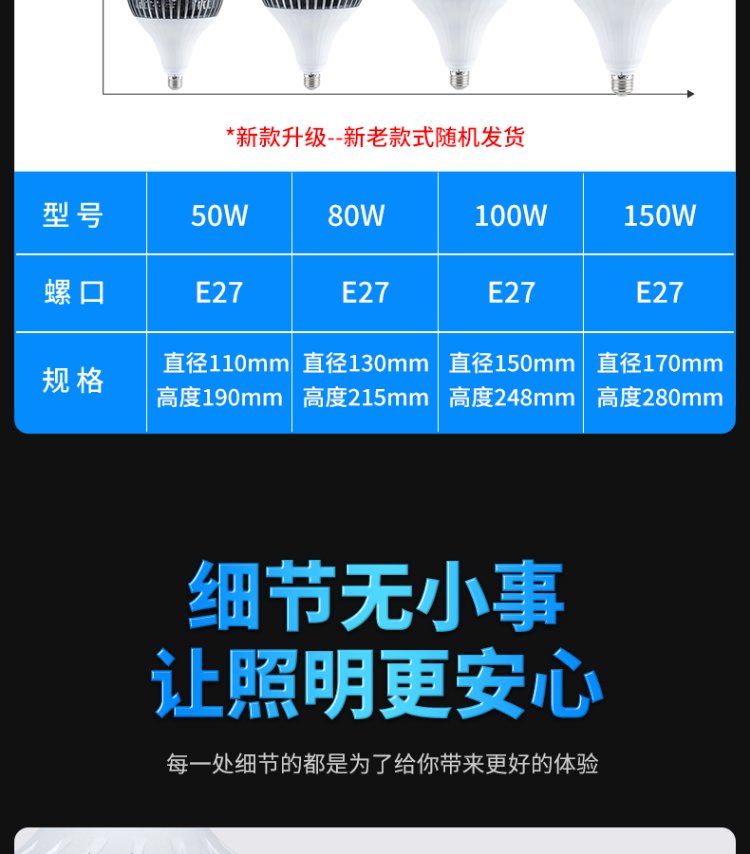 Deyan LED light bulb energy-saving lamp white light super bright high-power indoor lighting commercial factory e27 screw bulb 50W-engineering type-E27 screw/1 pack