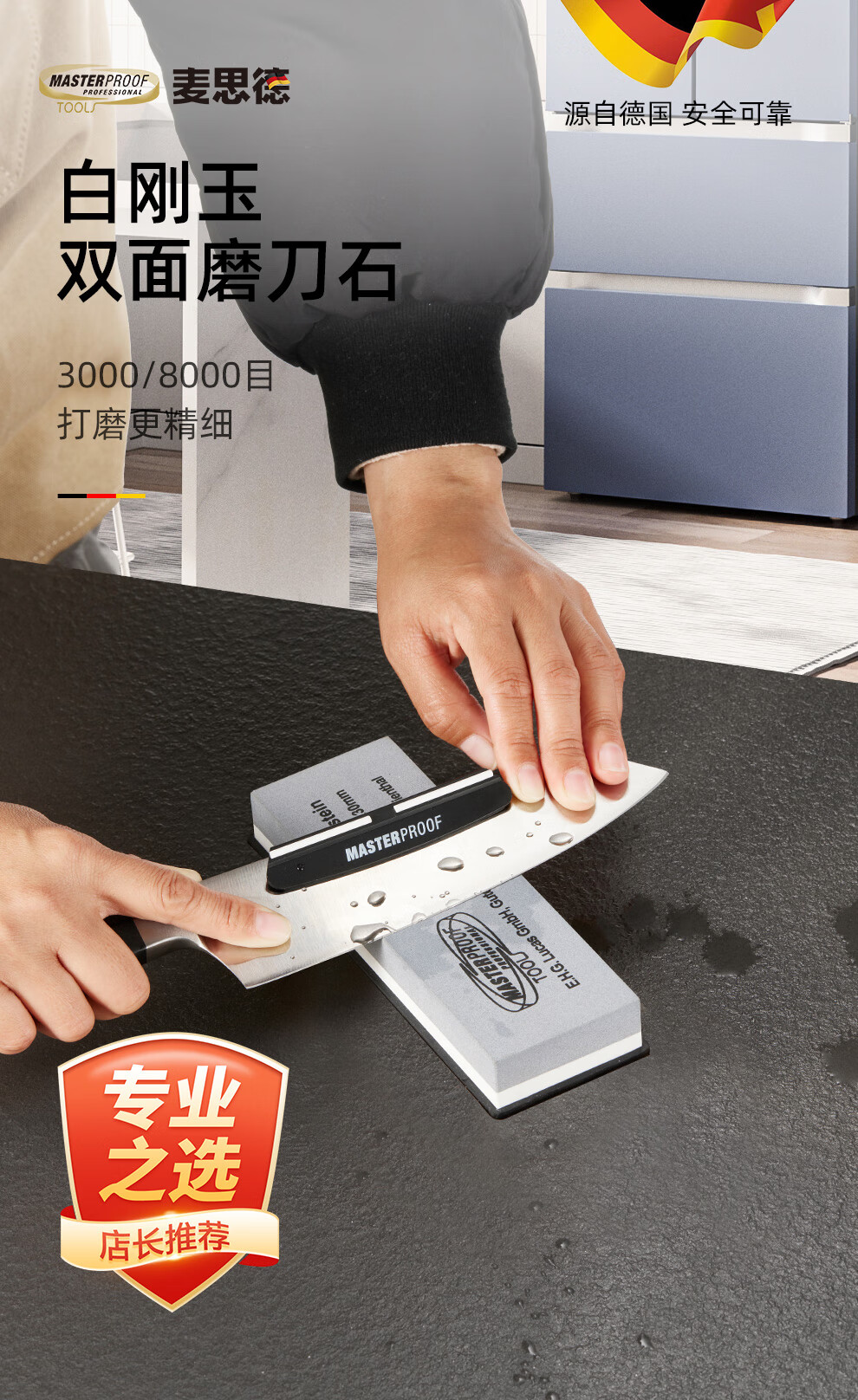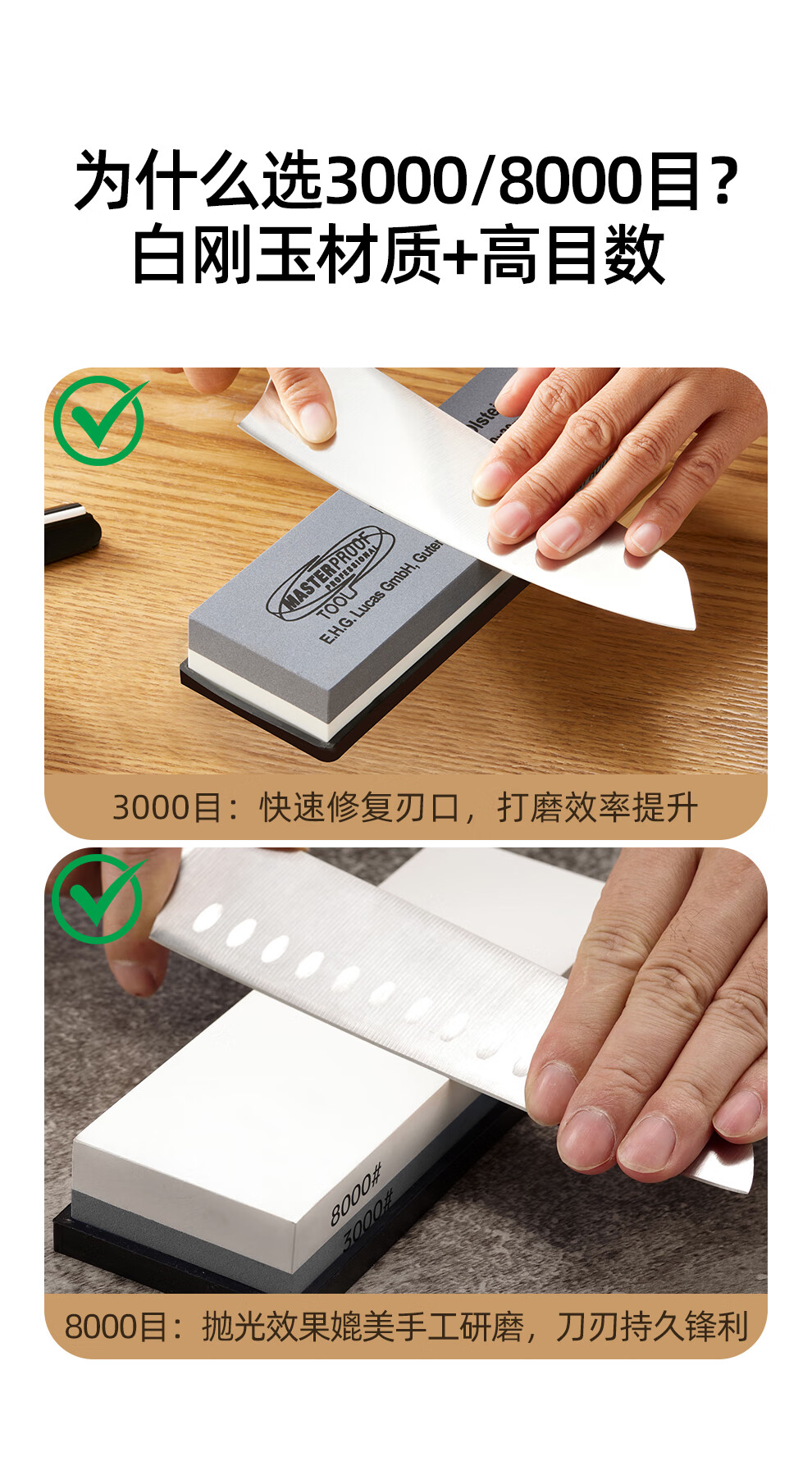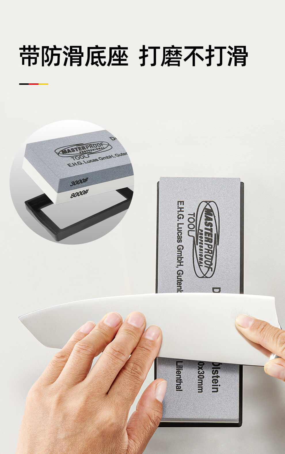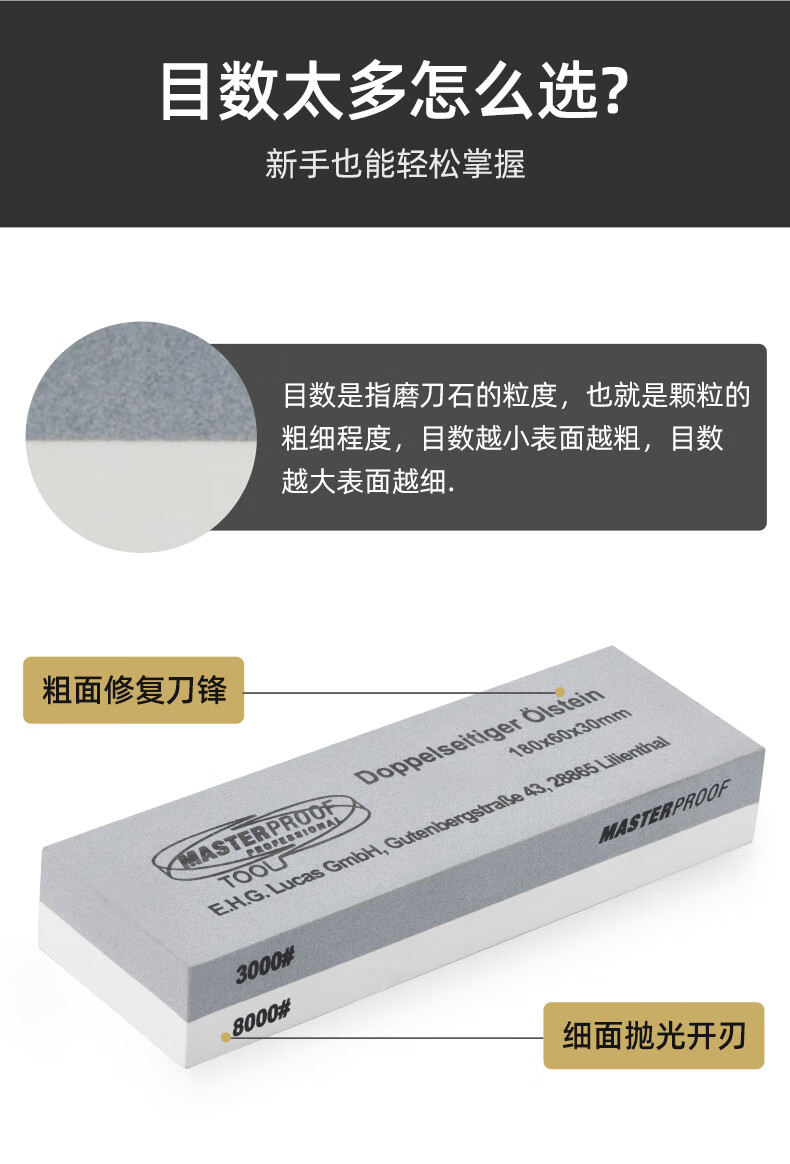 MASTERPROOF whetstone household coarse grinding and fine grinding anti-slip sharpener polishing stone white corundum double-sided whetstone 3000/8000