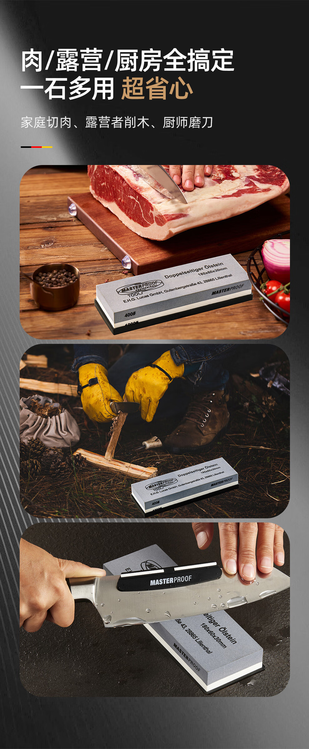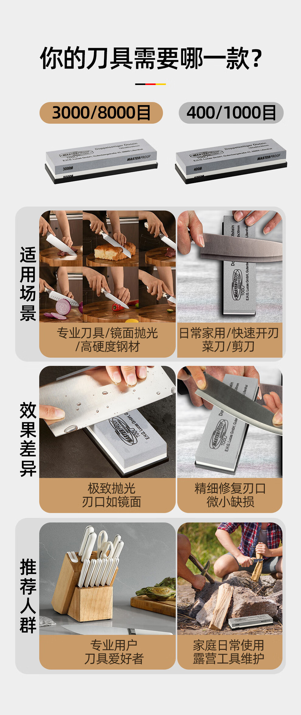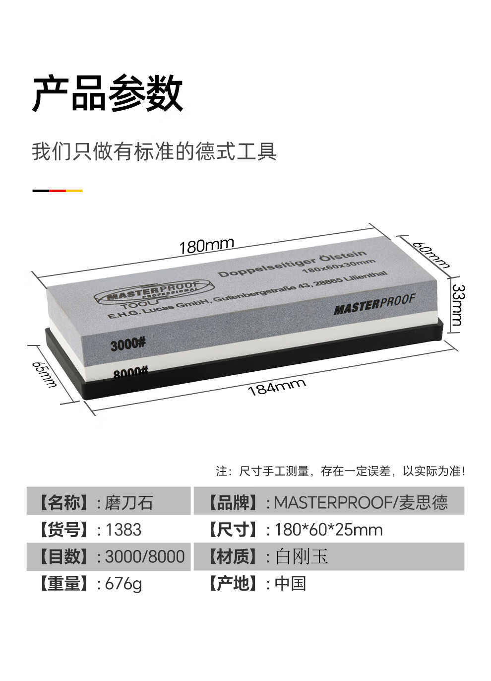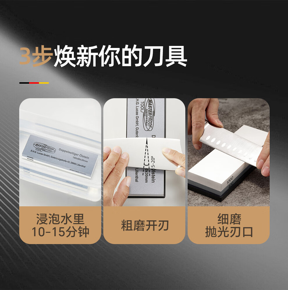 MASTERPROOF whetstone household coarse grinding and fine grinding anti-slip sharpener polishing stone white corundum double-sided whetstone 3000/8000