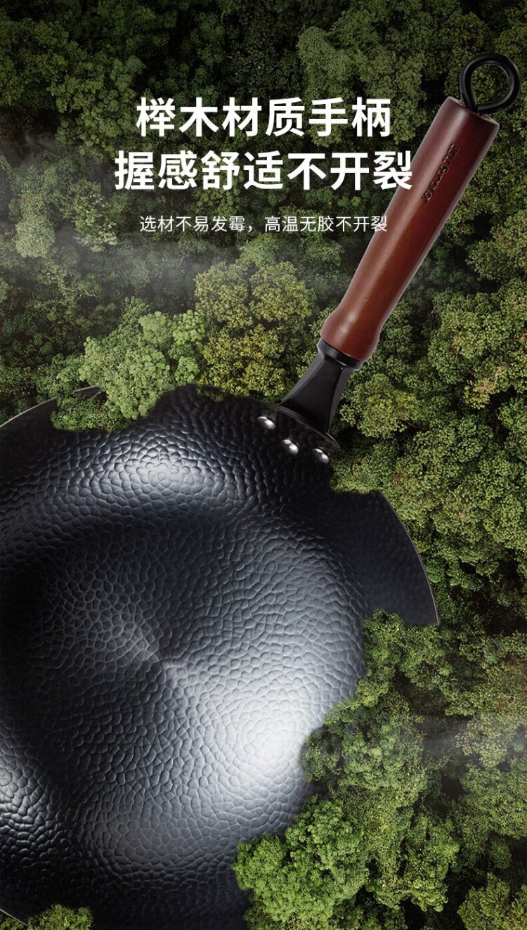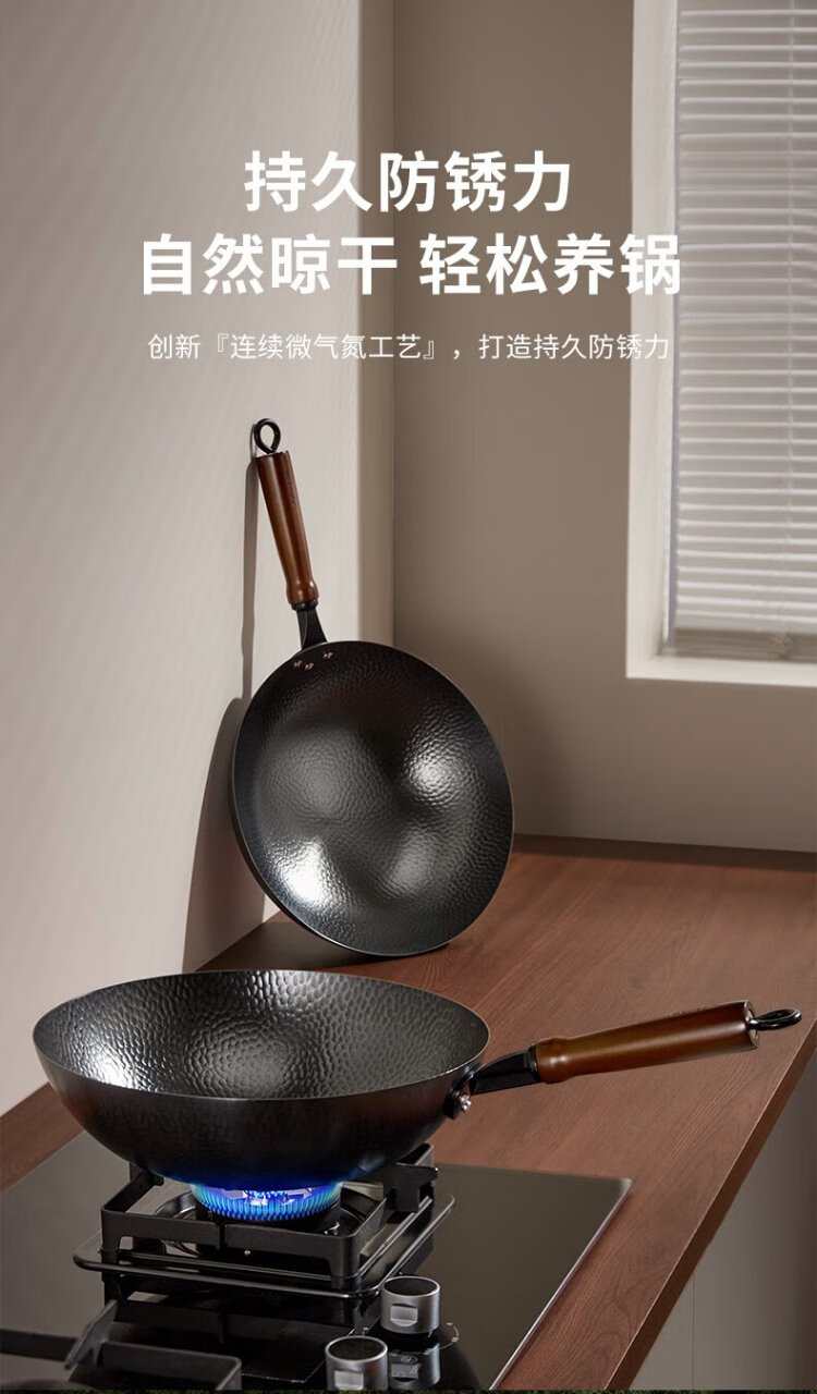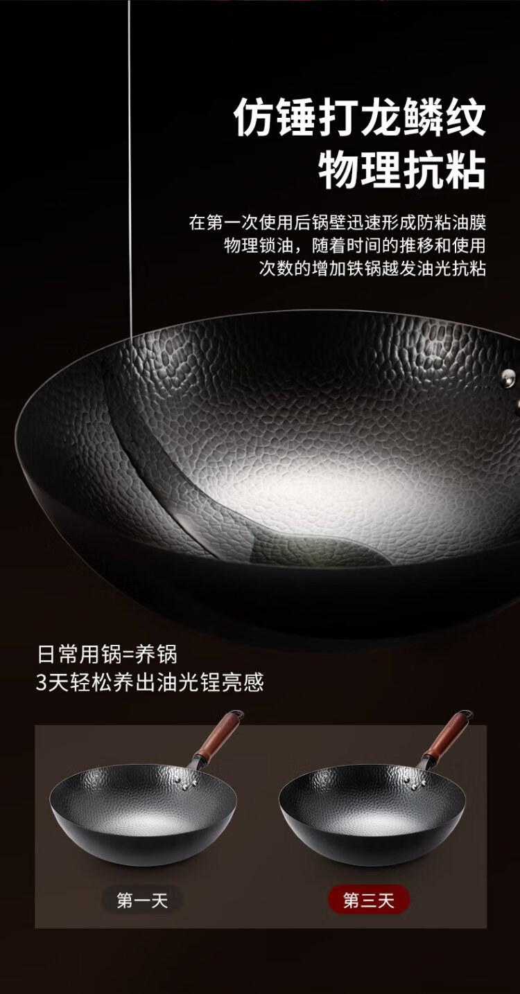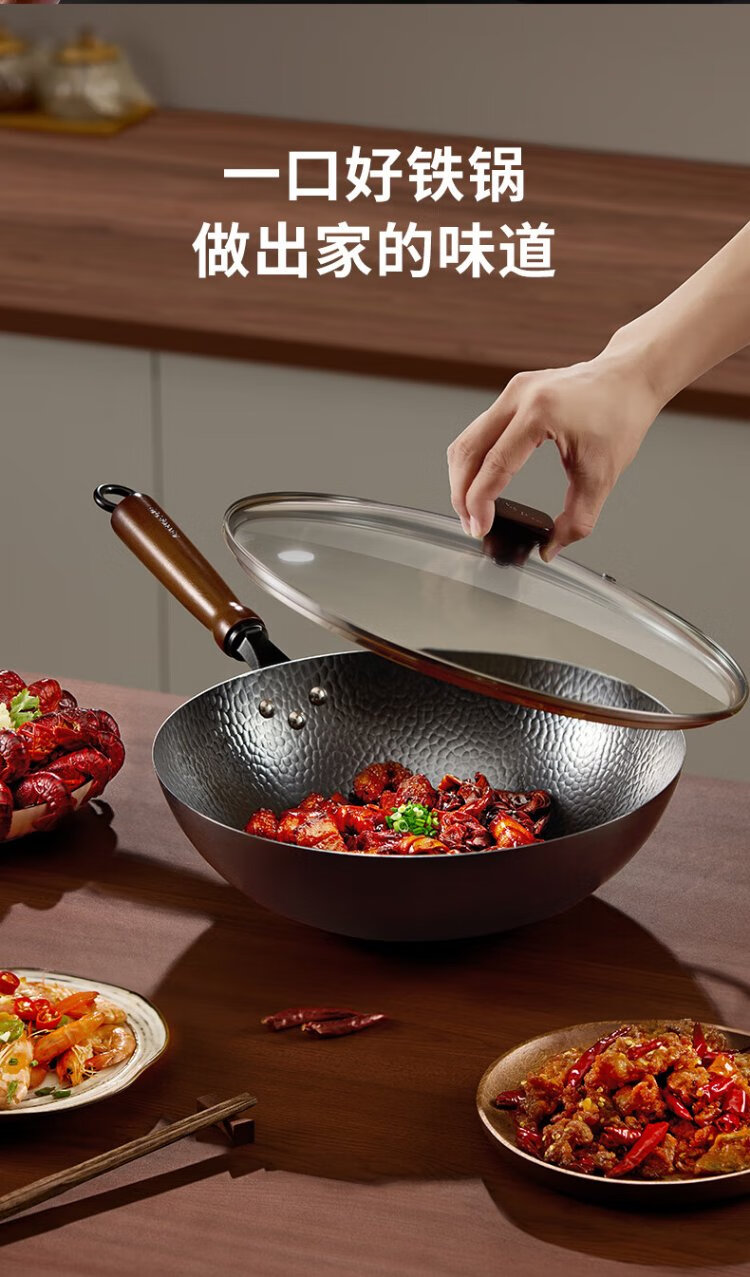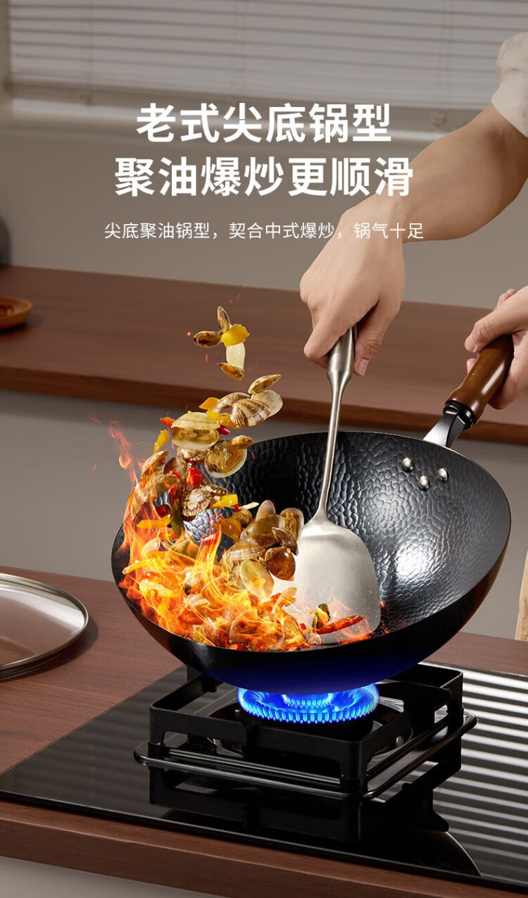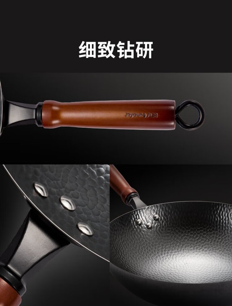 Joyoung iron pan, refined iron, healthy, uncoated, truly stainless, hammered, physical anti-stick wok, no need to open the pot, 32cm open flame only