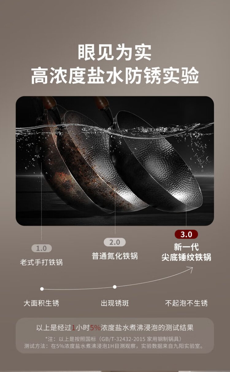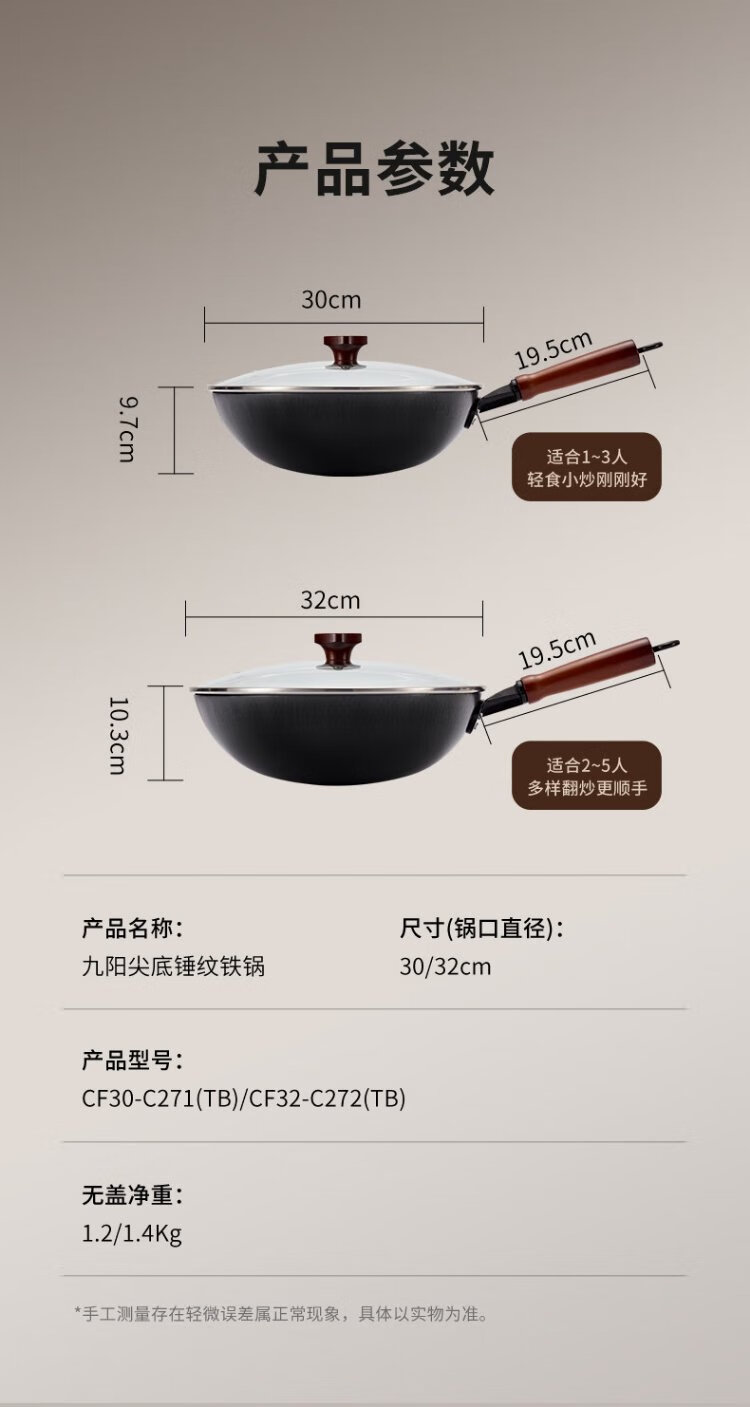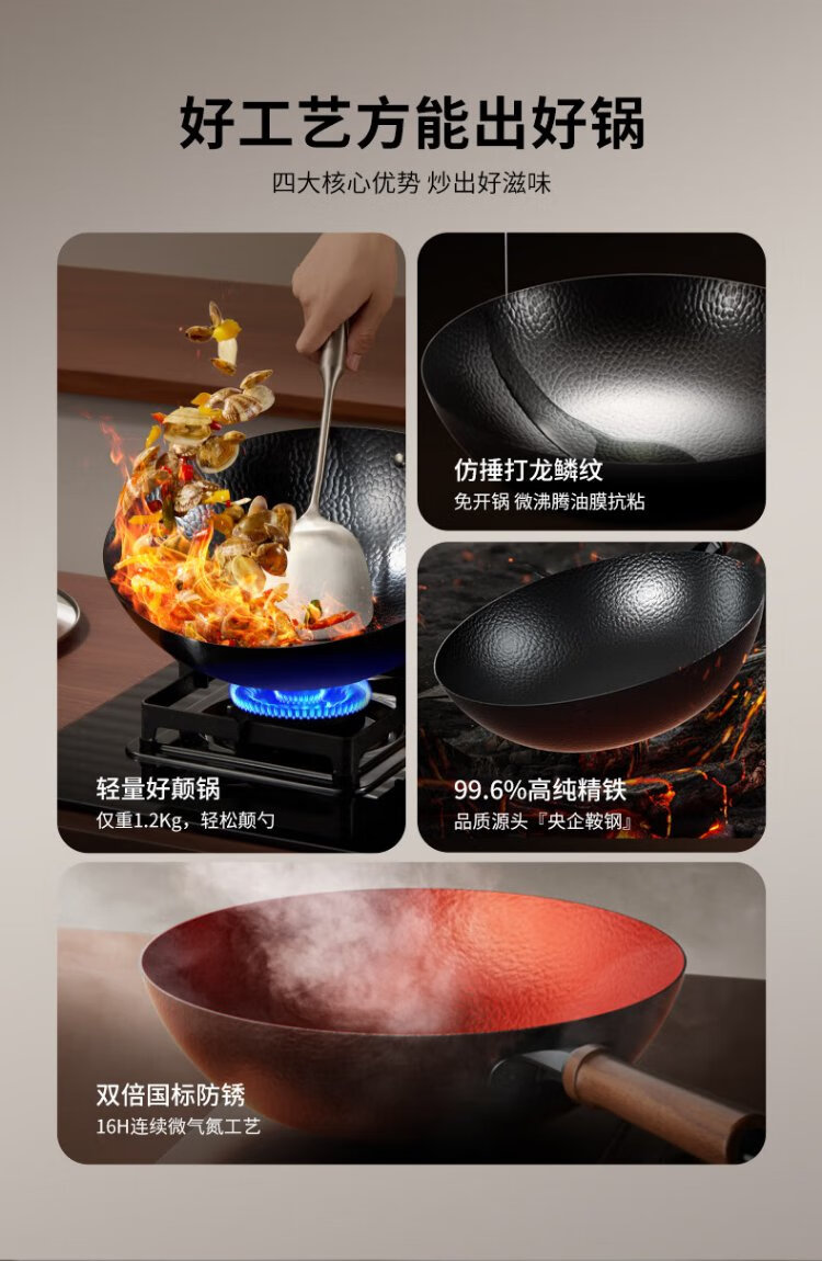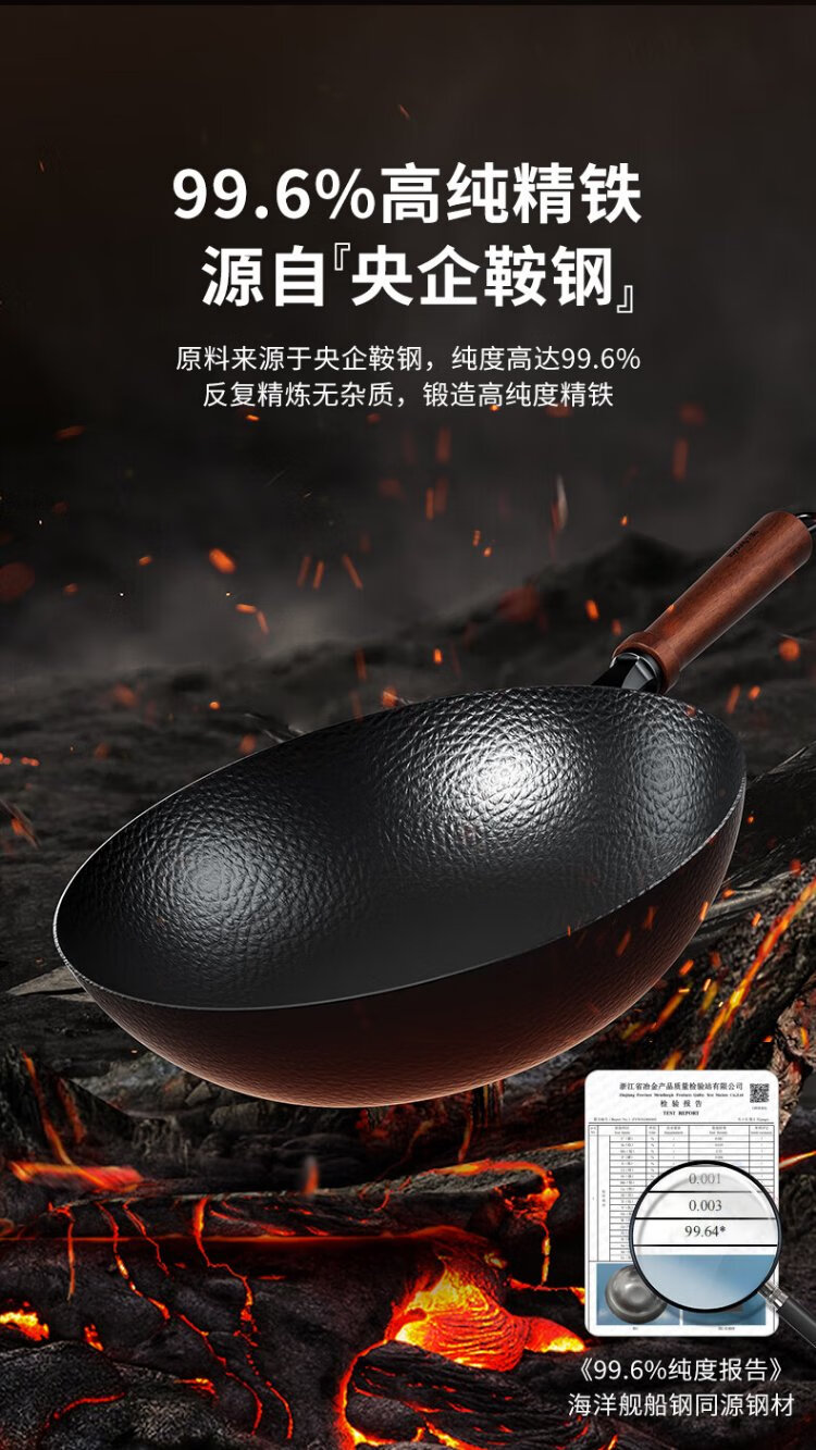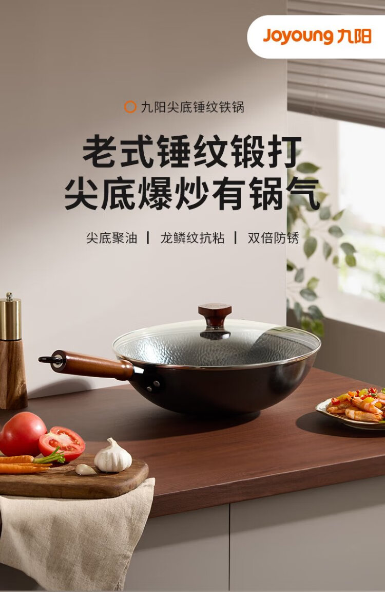 Joyoung iron pan, refined iron, healthy, uncoated, truly stainless, hammered, physical anti-stick wok, no need to open the pot, 32cm open flame only