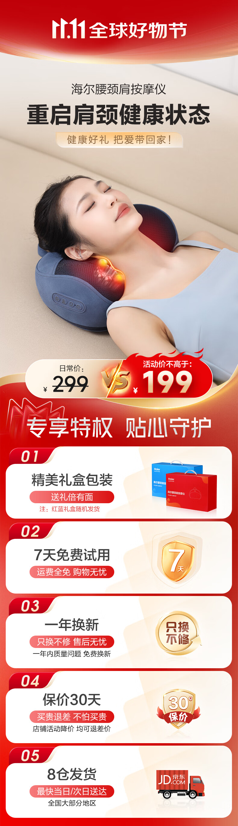 Haier cervical spine massager waist massager massage pillow neck shoulder neck back massage cushion neck leg sole whole body birthday holiday gift HHZ-Y602L-Pro