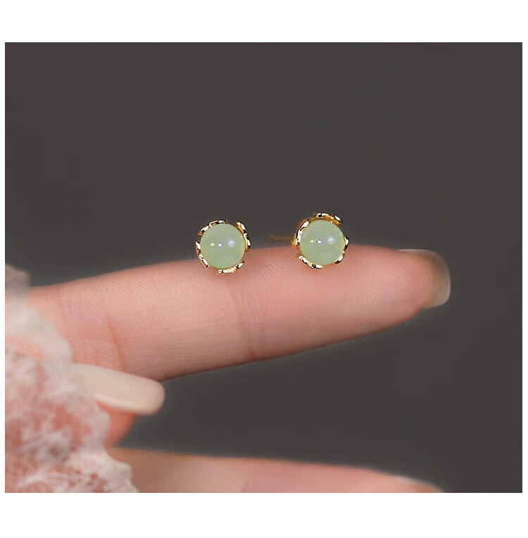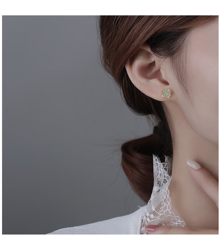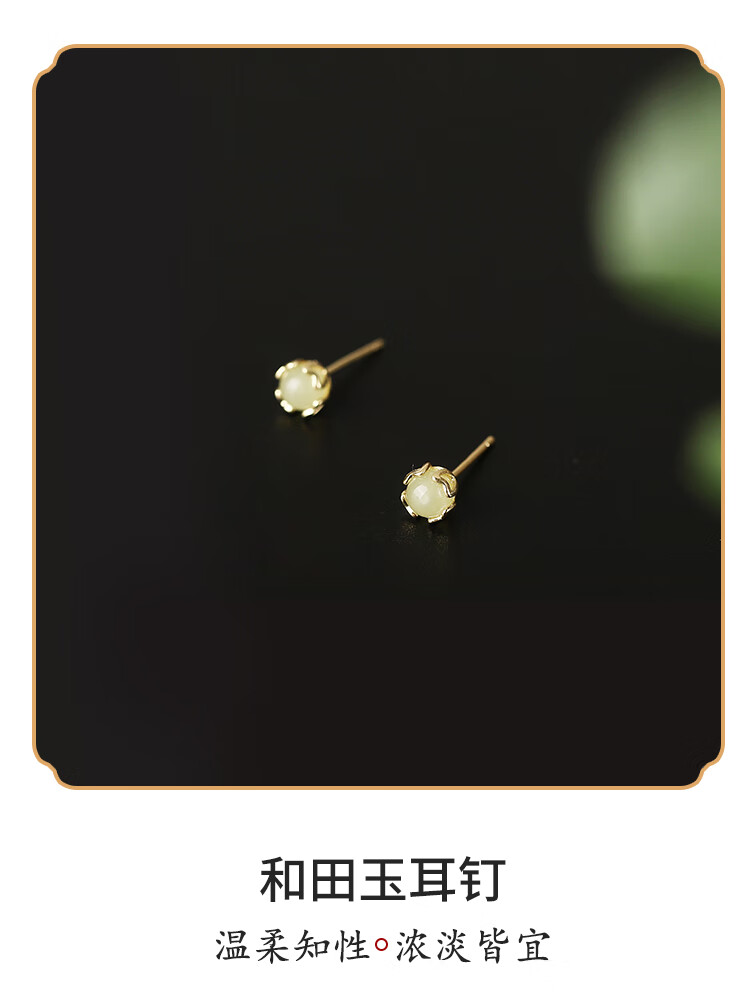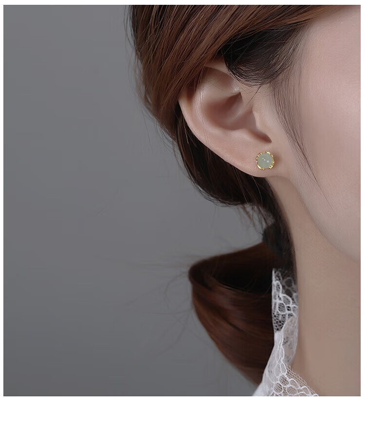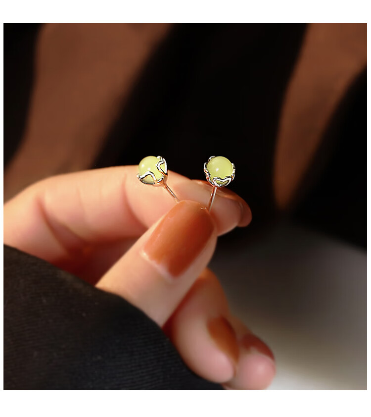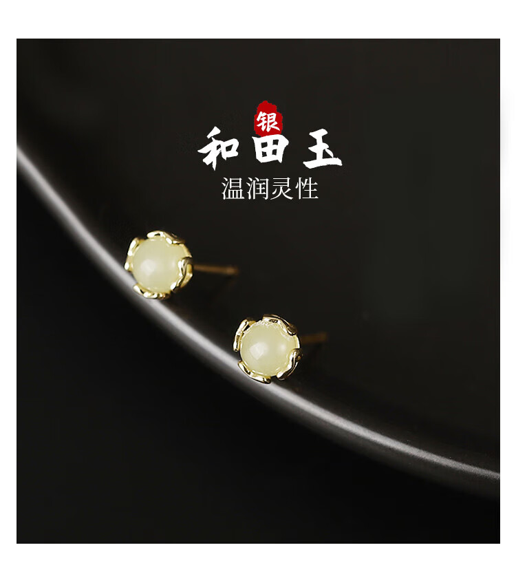 Jianlu Hotan Jade Silver Earrings for Women Simple Temperament High-end Earrings Jewelry Mother's Birthday New Year Gift for Mom
