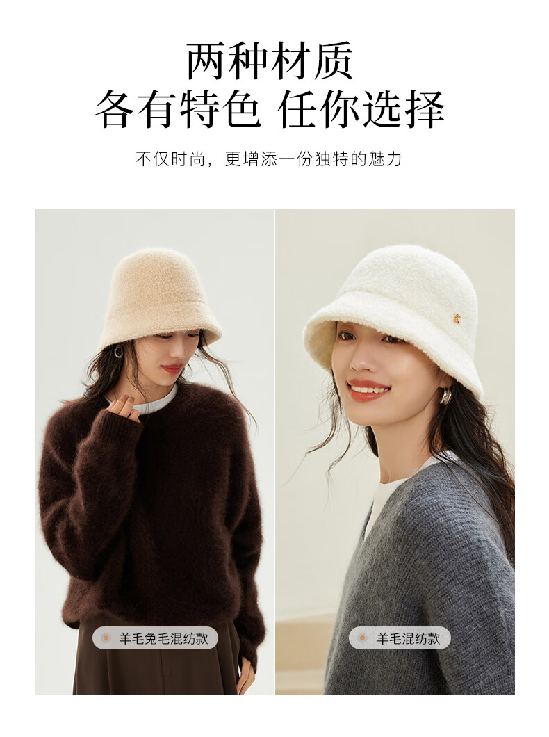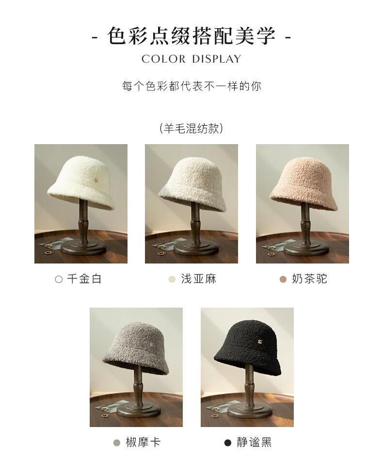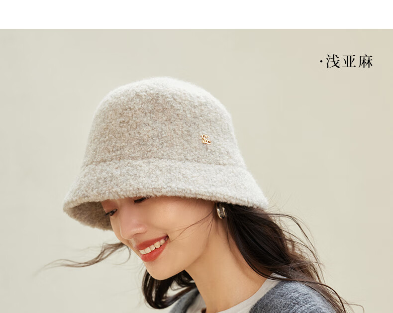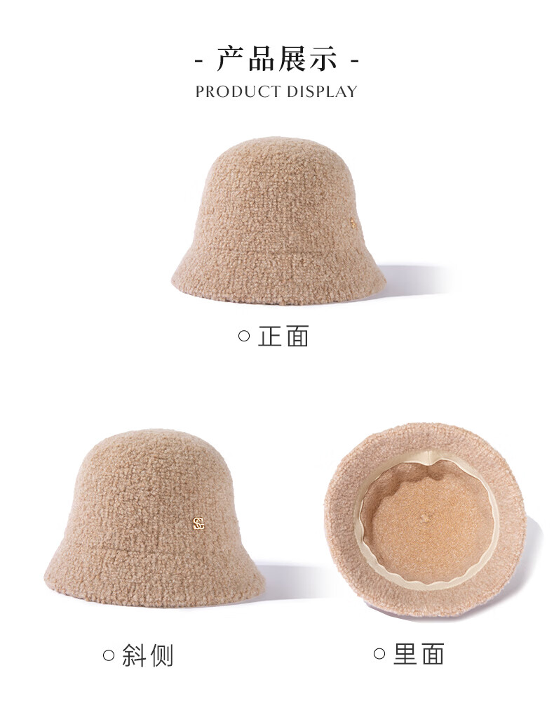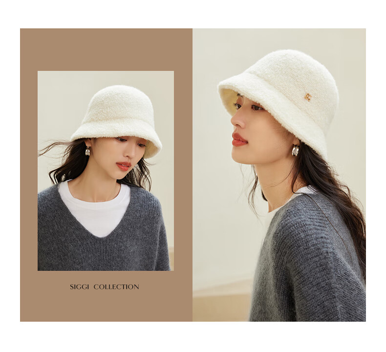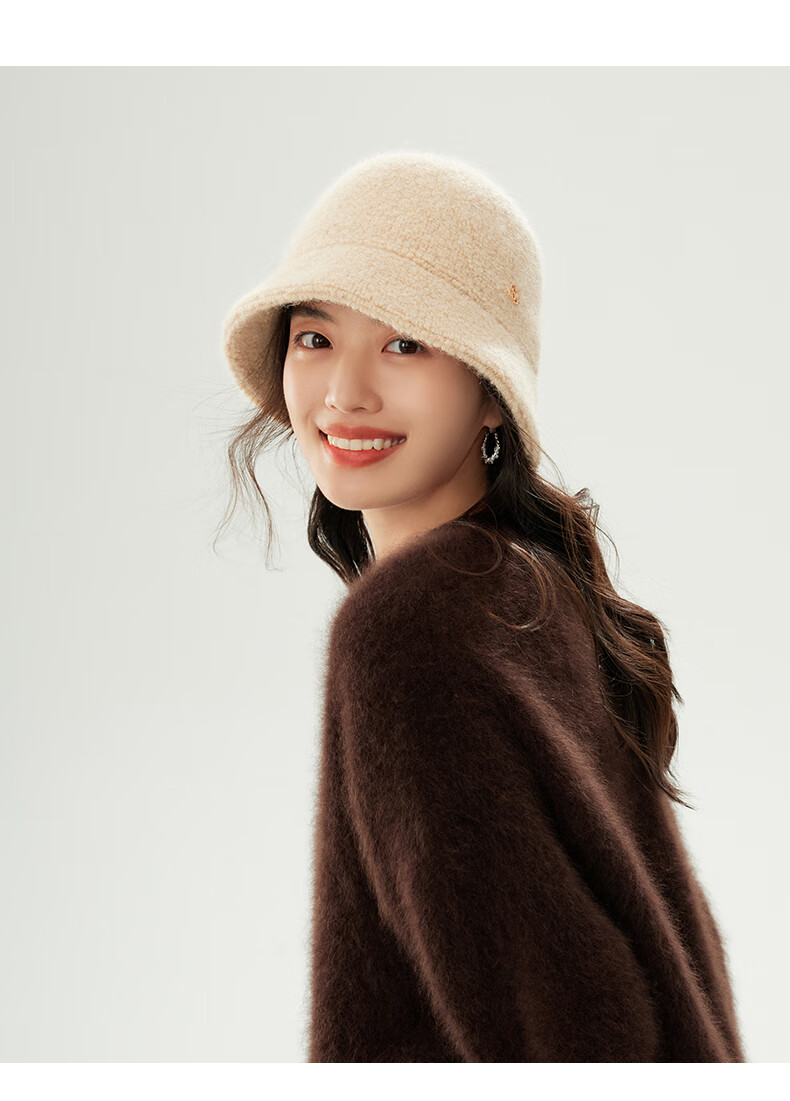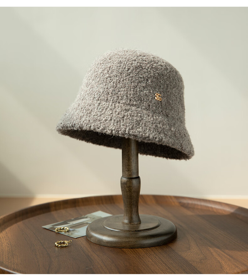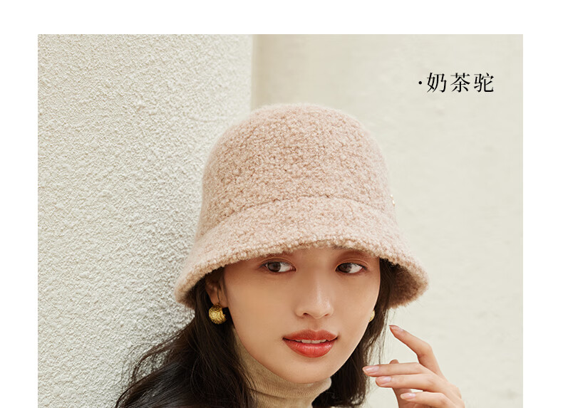 Siggi autumn and winter fisherman hat women's wool hat fashion versatile bucket hat plus velvet warm basin hat camel