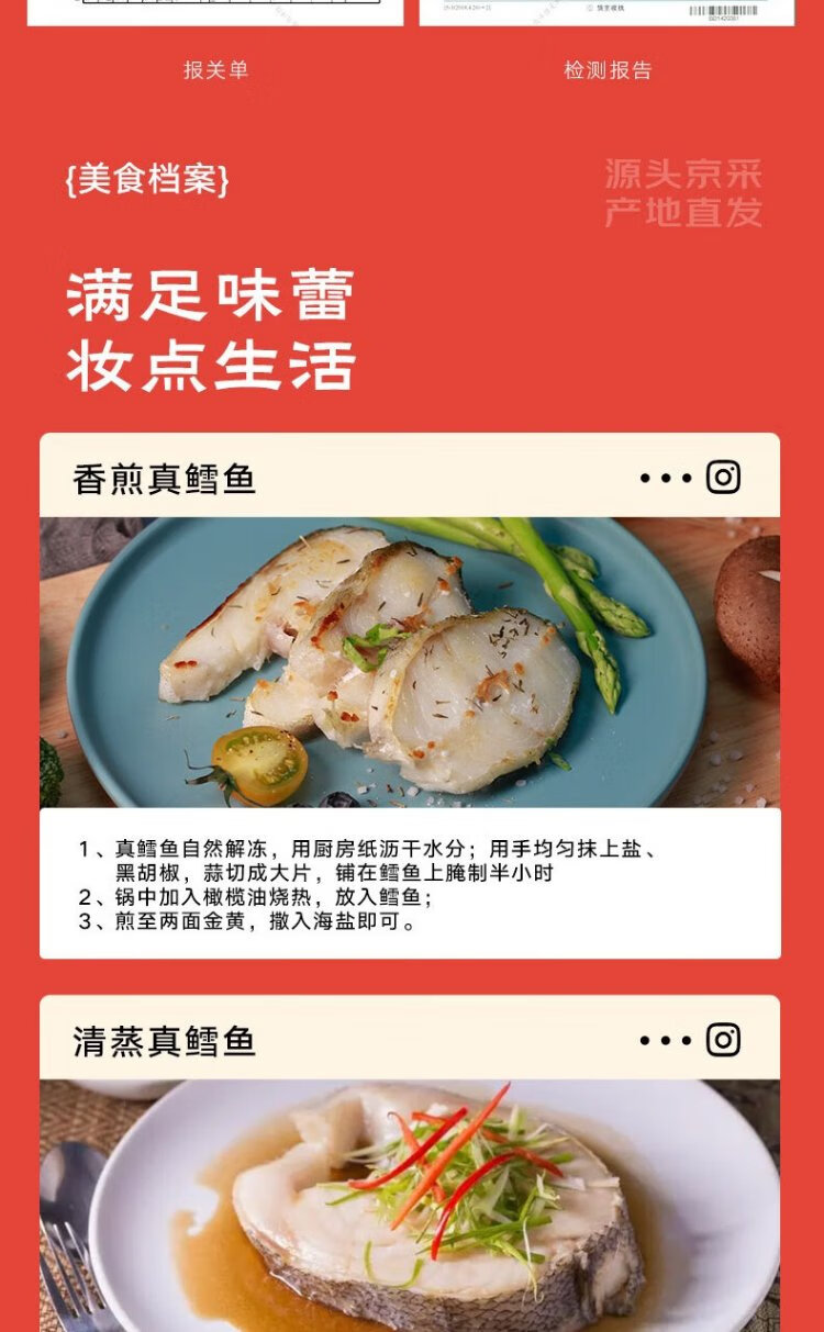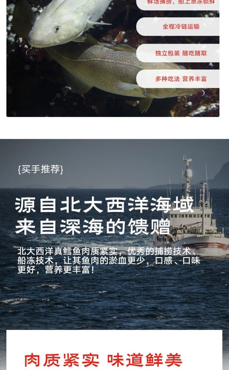 Fresh Jingcai frozen Atlantic cod fillet net weight 900g/bag, skinned and cut into sections, individually bagged, fresh fish
