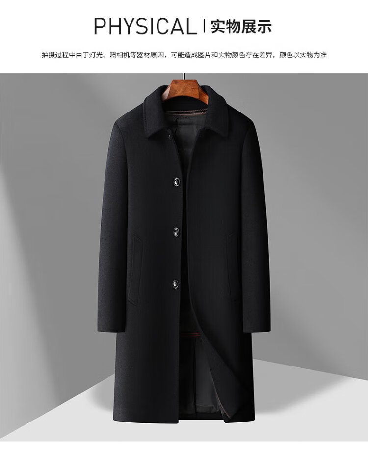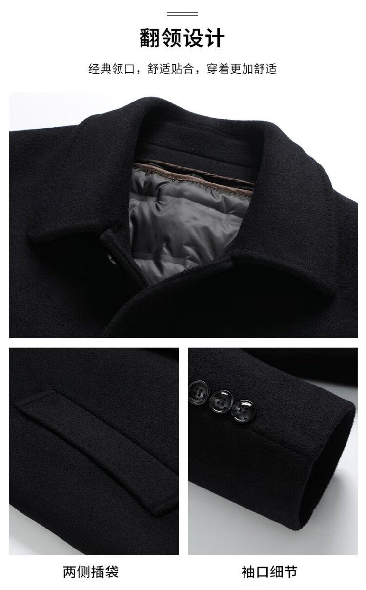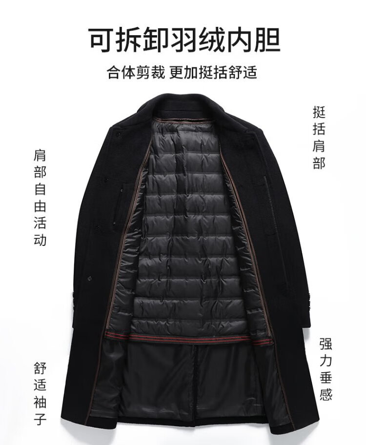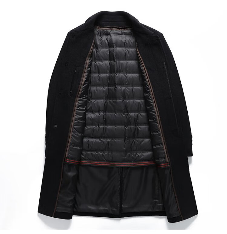 Mushilang 90 white duck down wool coat men's mid-length autumn and winter thickened removable down liner men's coat