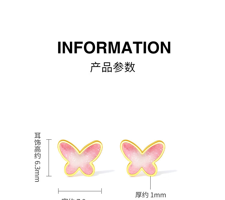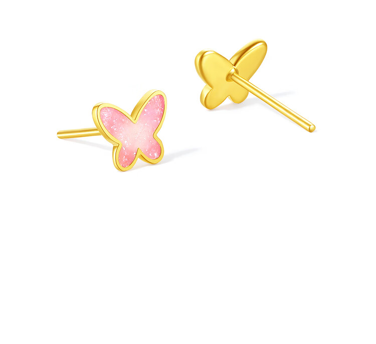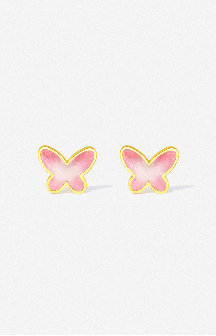 Saturday Fortune 18K Gold Earrings for Women Pink Butterfly Earrings Colorful Gold Earrings Birthday Gift C0914119 Pair
