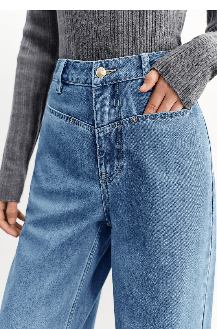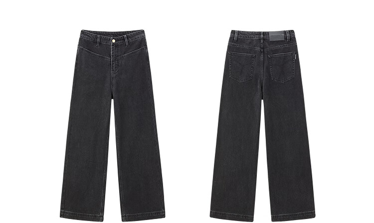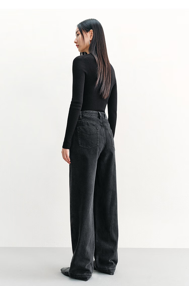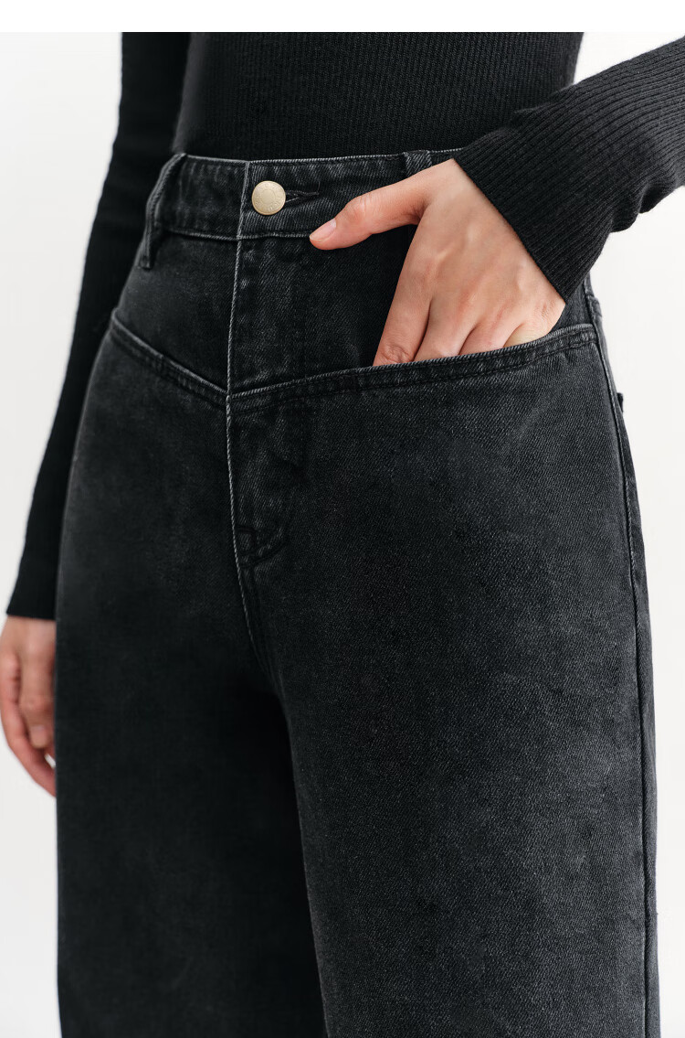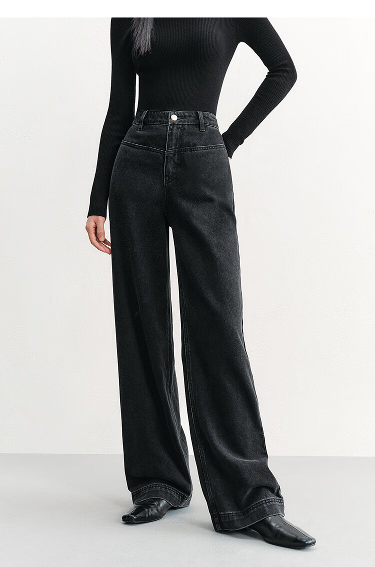 PEACEBIRD Women's Jeans High Waisted Straight Leg Autumn and Winter Warm Denim Loose Wide Leg Pants Denim Dark Black M