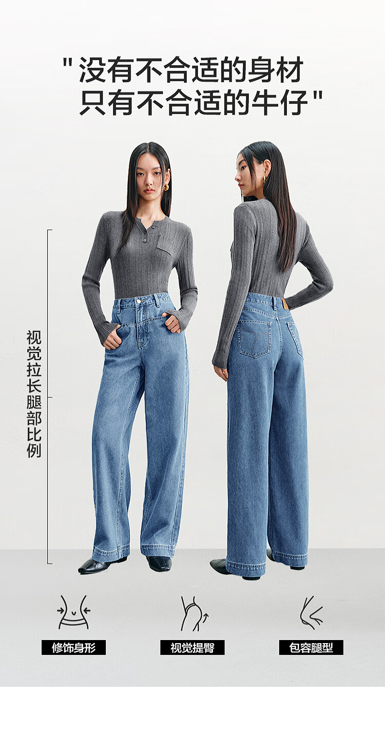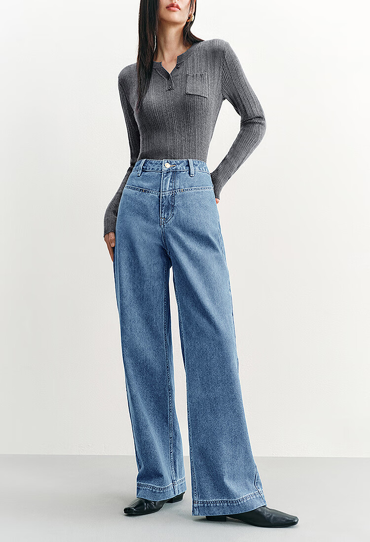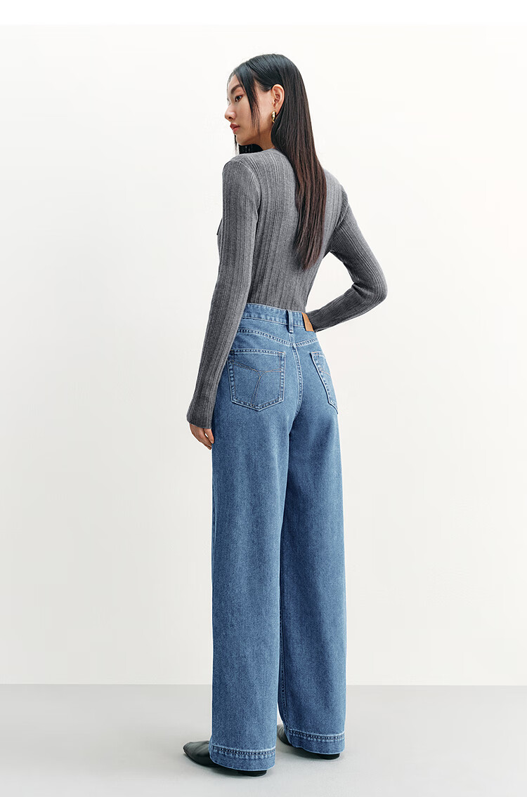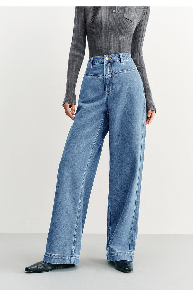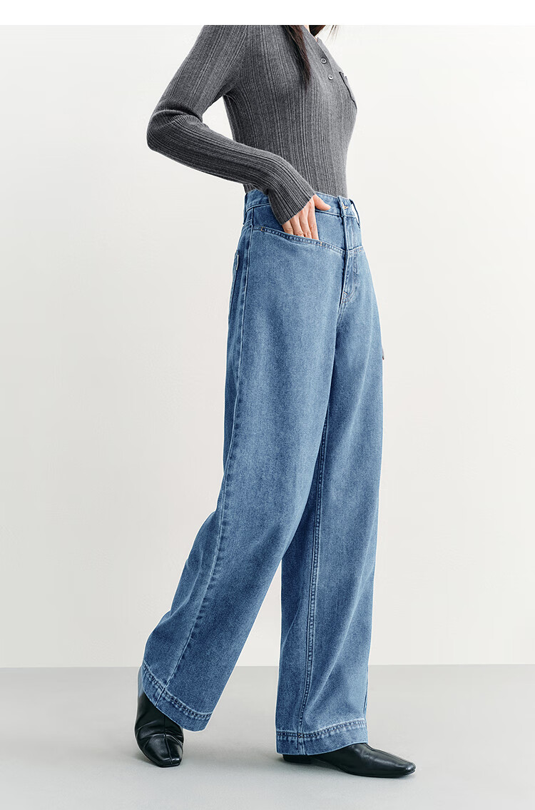 PEACEBIRD Women's Jeans High Waisted Straight Leg Autumn and Winter Warm Denim Loose Wide Leg Pants Denim Dark Black M