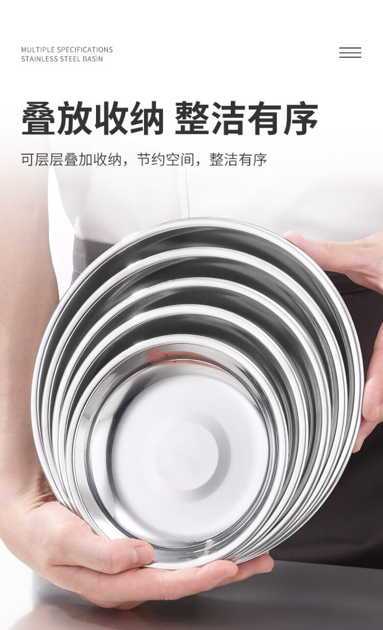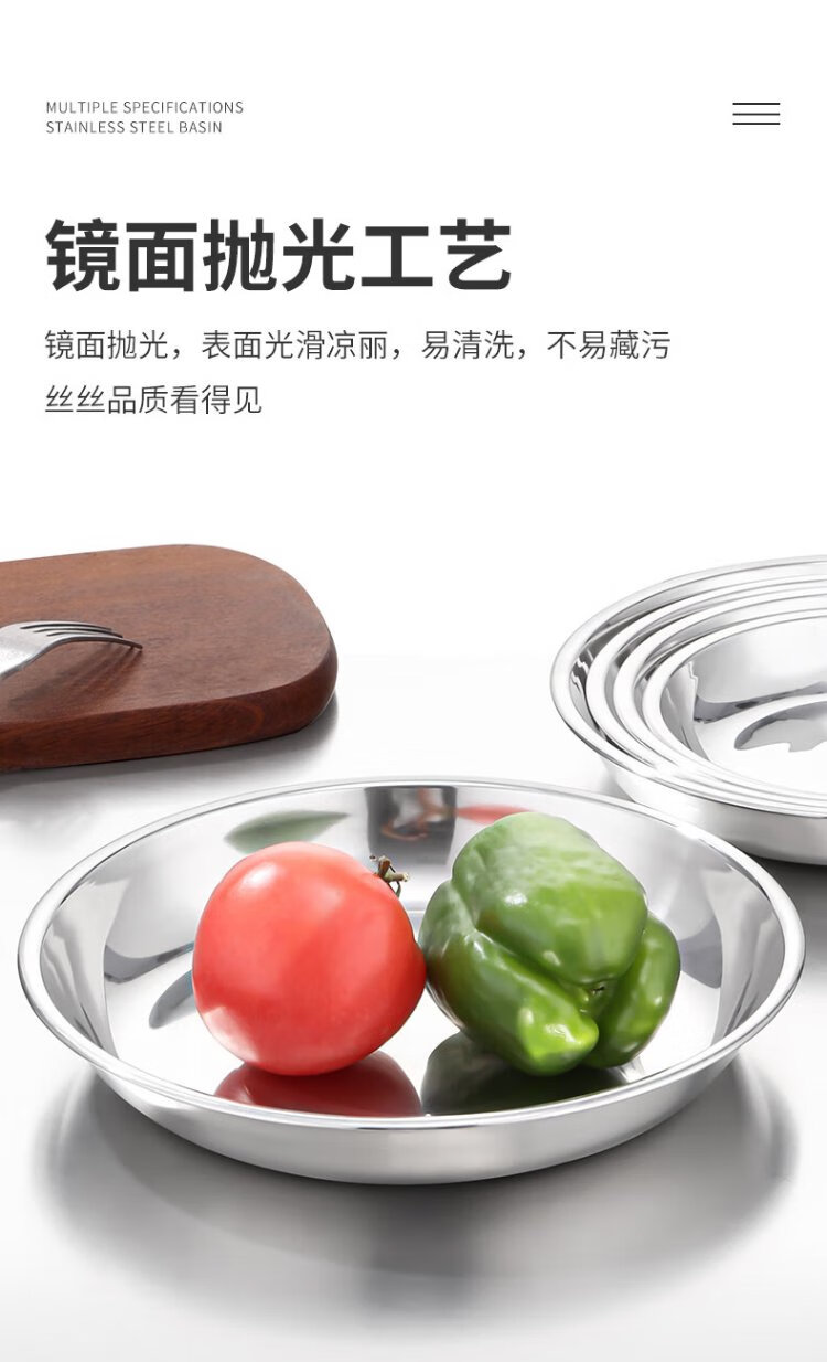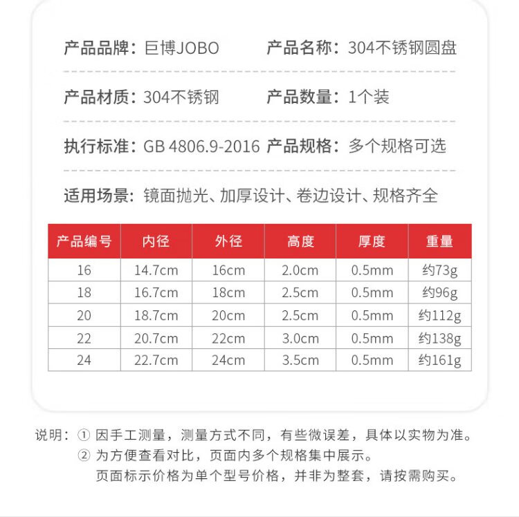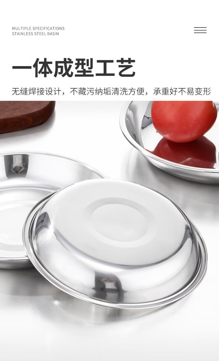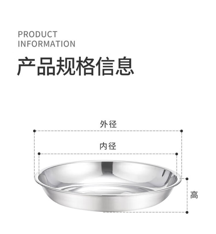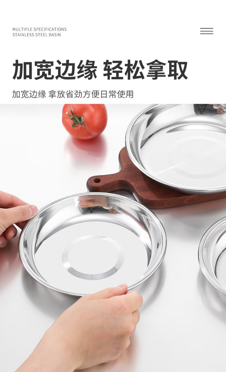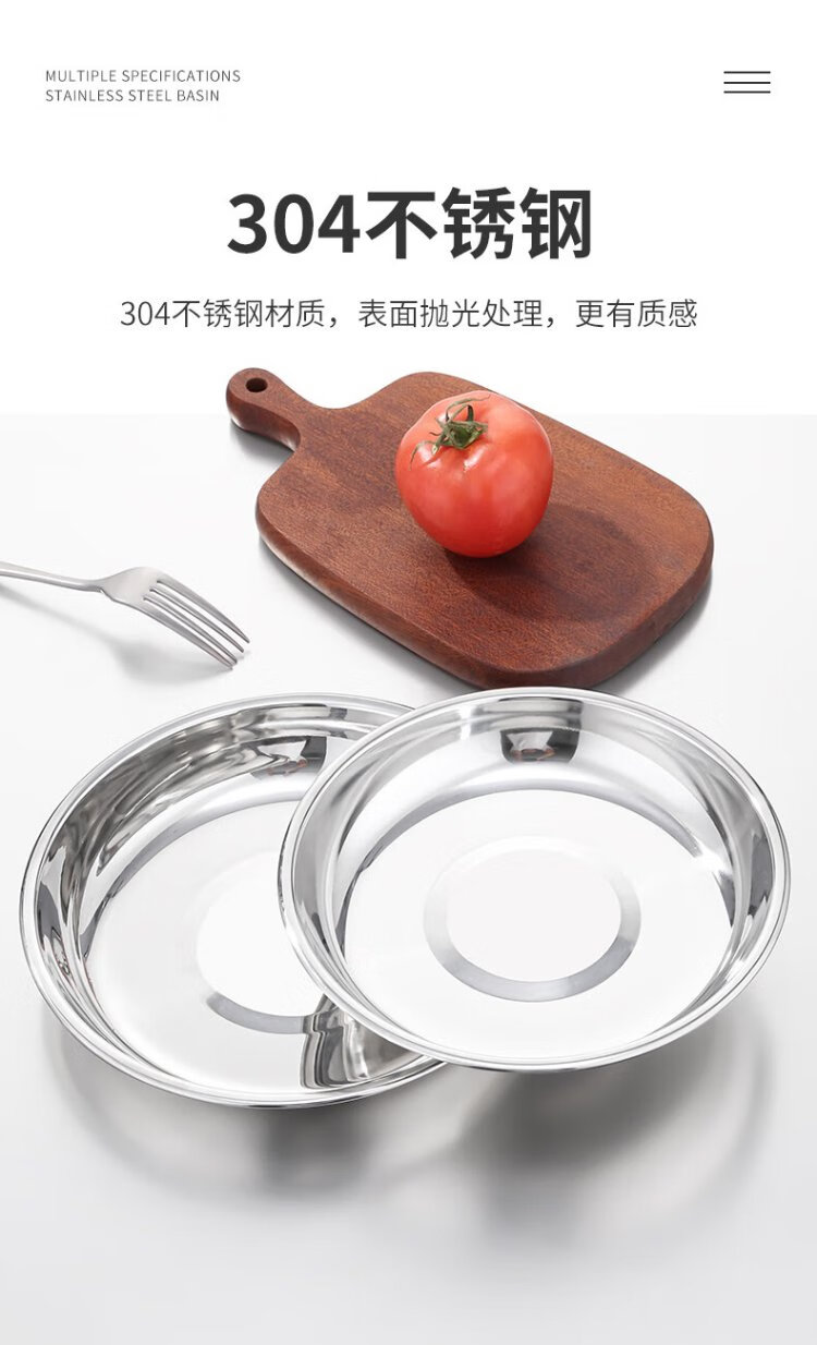 JOBO 304 stainless steel plate side dish plate 16cm thick round dish preparation plate shallow plate flat bottom dinner plate