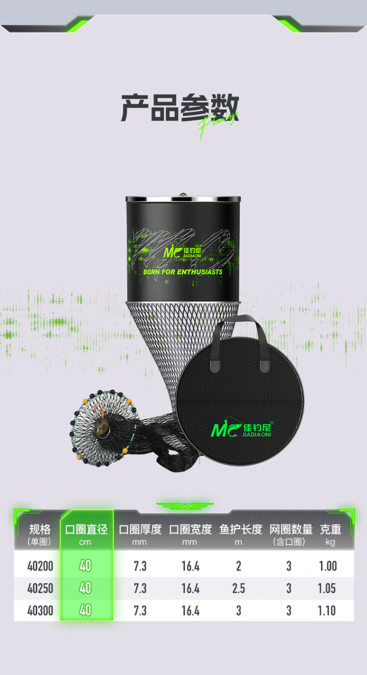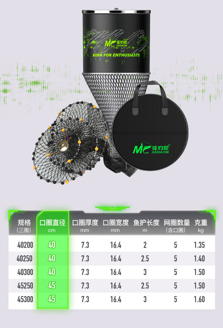 JIADIAONI Black Pit Vigorous Horsefish Protection Wild Fishing Quick-drying Fish Protection Net Portable Thickened Fishing Protection Fishing Gear Single Circle 40250
