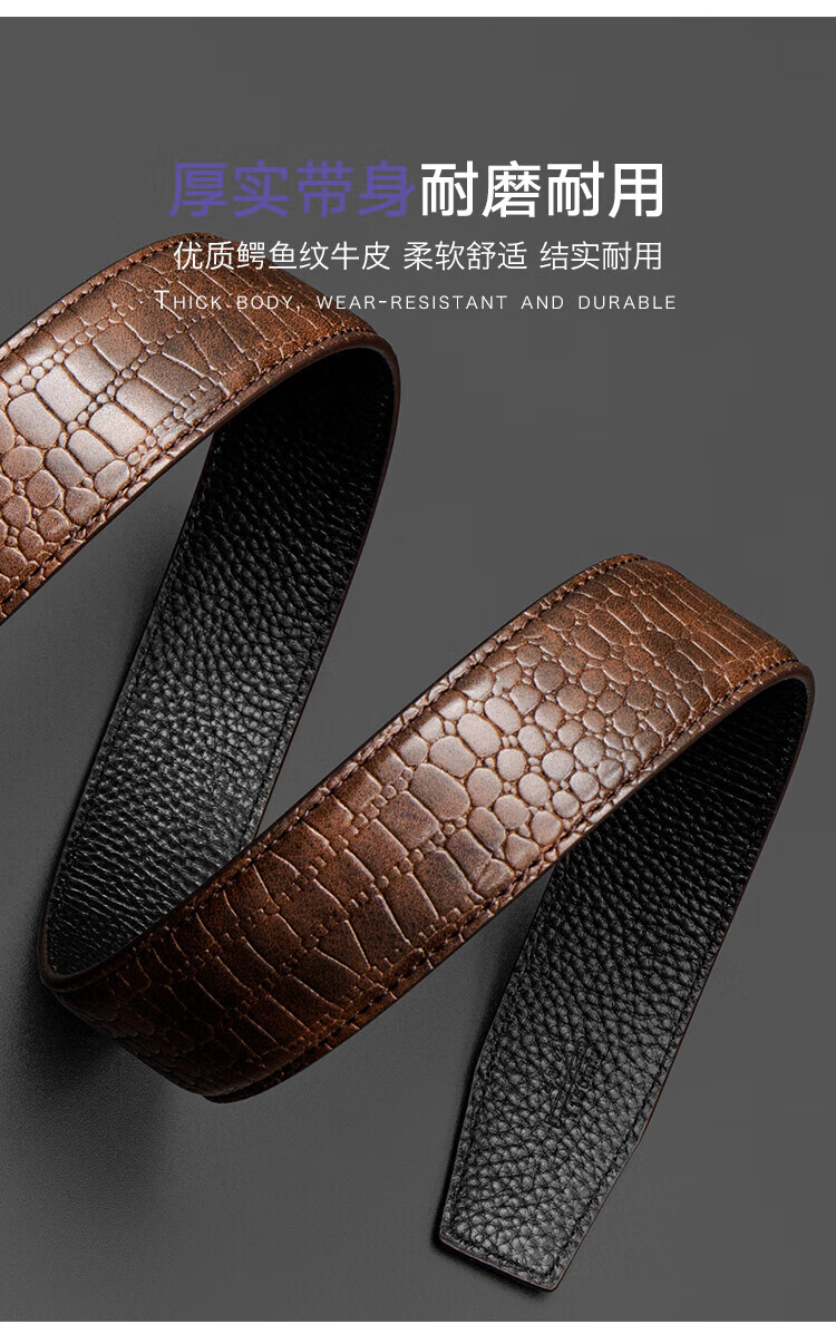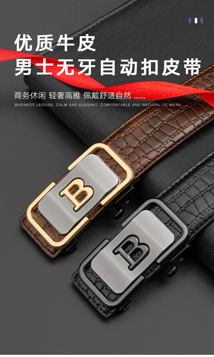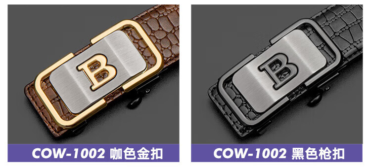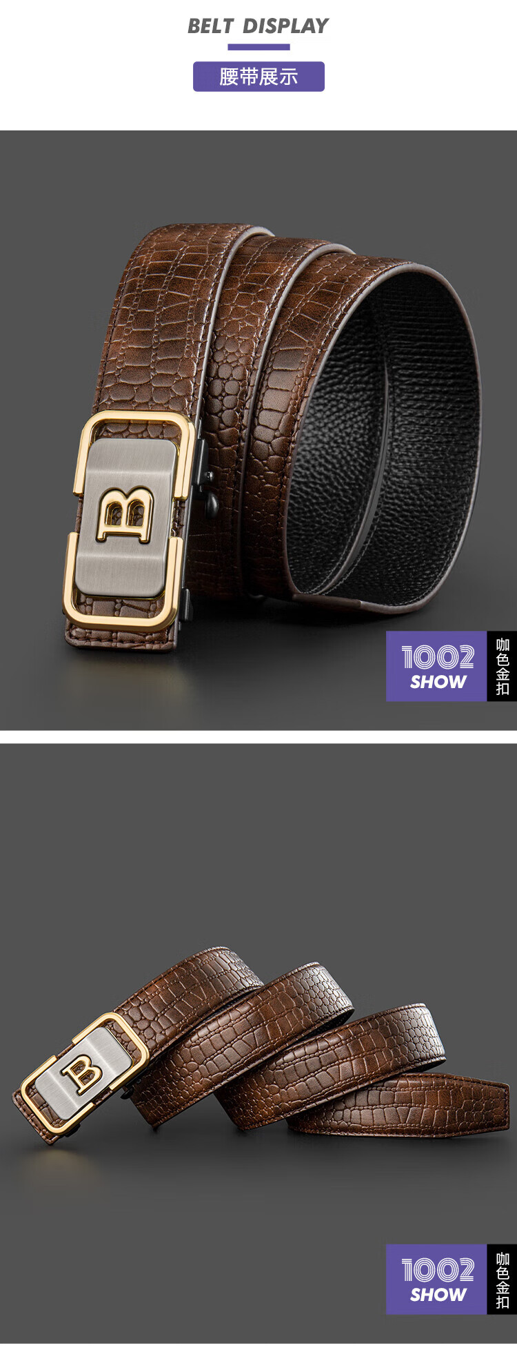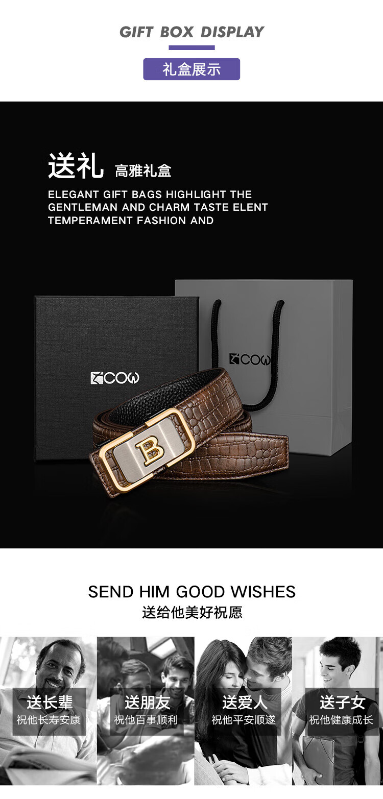 COW belt men's automatic buckle cowhide gift box belt business casual light luxury crocodile pattern pants belt gift 1002 coffee color