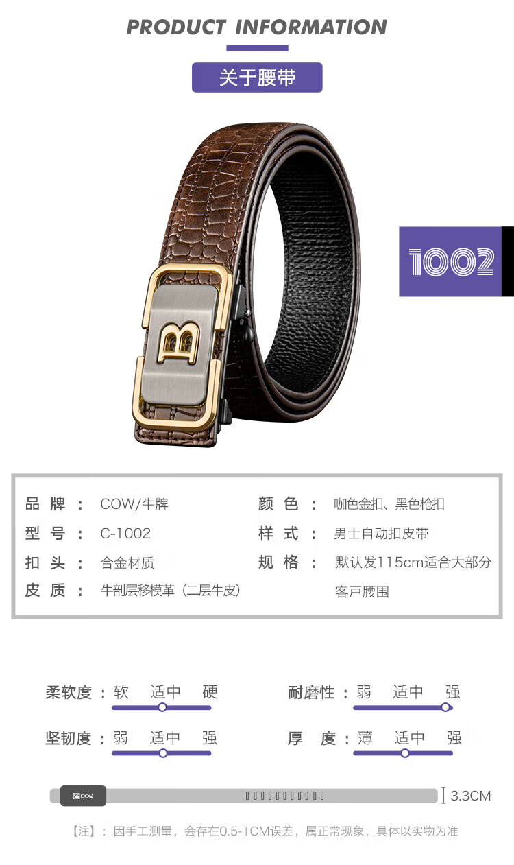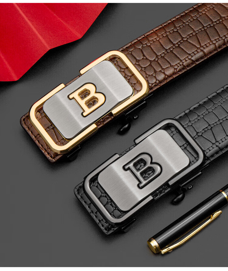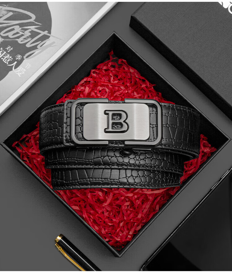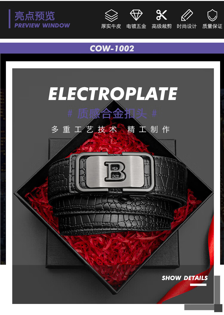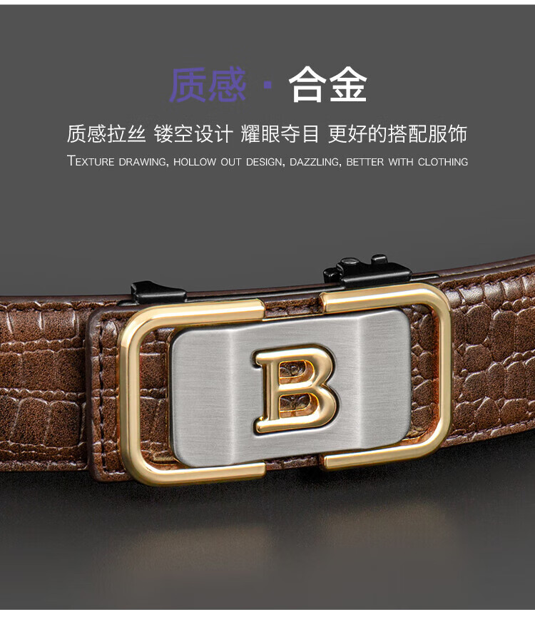 COW belt men's automatic buckle cowhide gift box belt business casual light luxury crocodile pattern pants belt gift 1002 coffee color